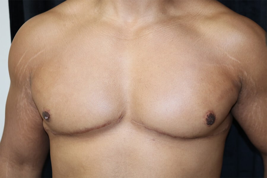 When Dr. Delgado is treating more extreme cases of gynecomastia, a double incision mastectomy with free nipple graft is employed. This male breast reduction procedure involves making two incisions on the chest, which results in a minimal at the bottom of the breast fold, also called the inferior mammary fold. The excess breast tissue, excess fatty tissue, and skin are removed. This results in a tight chest with a great masculine chest appearance.