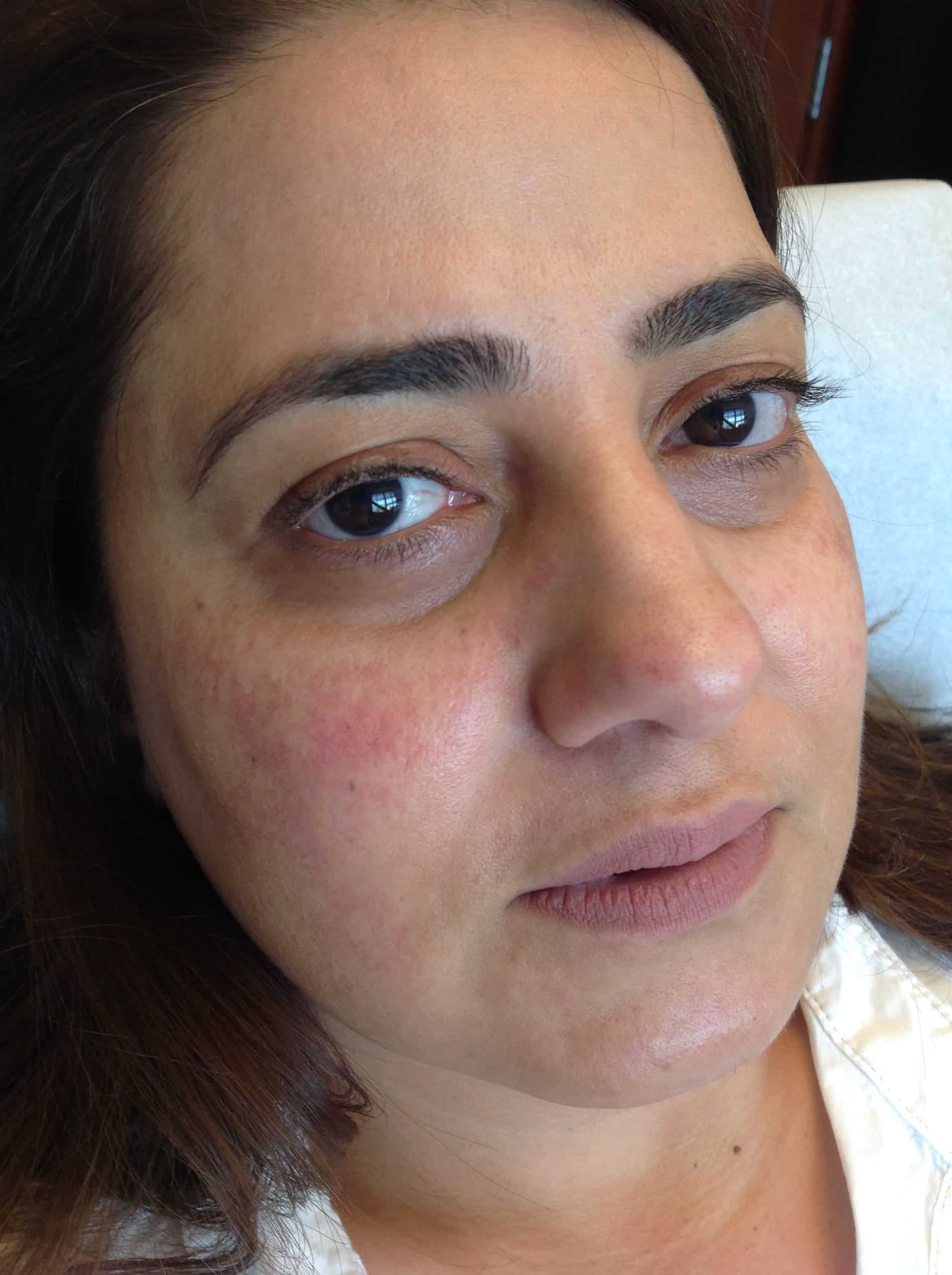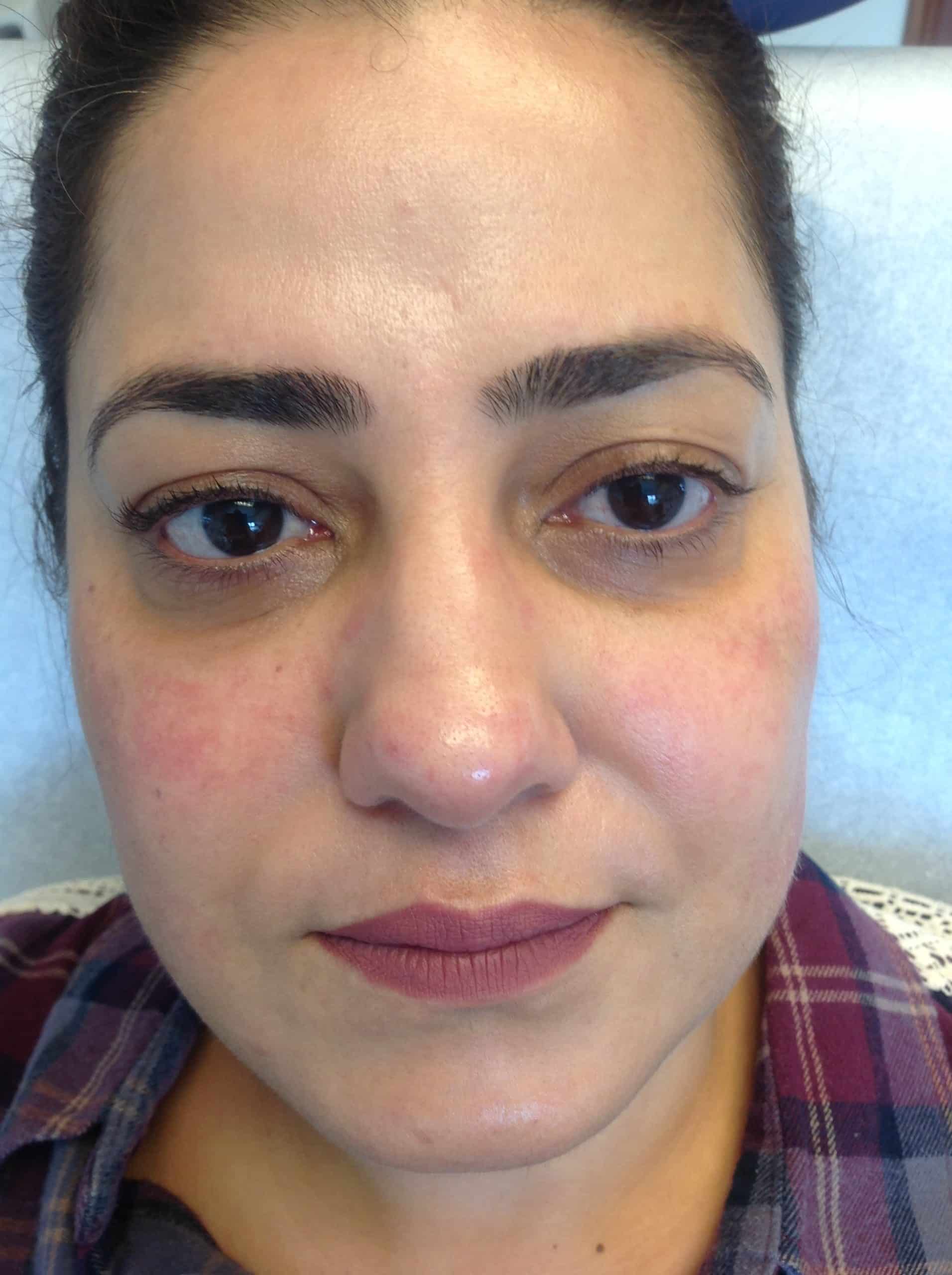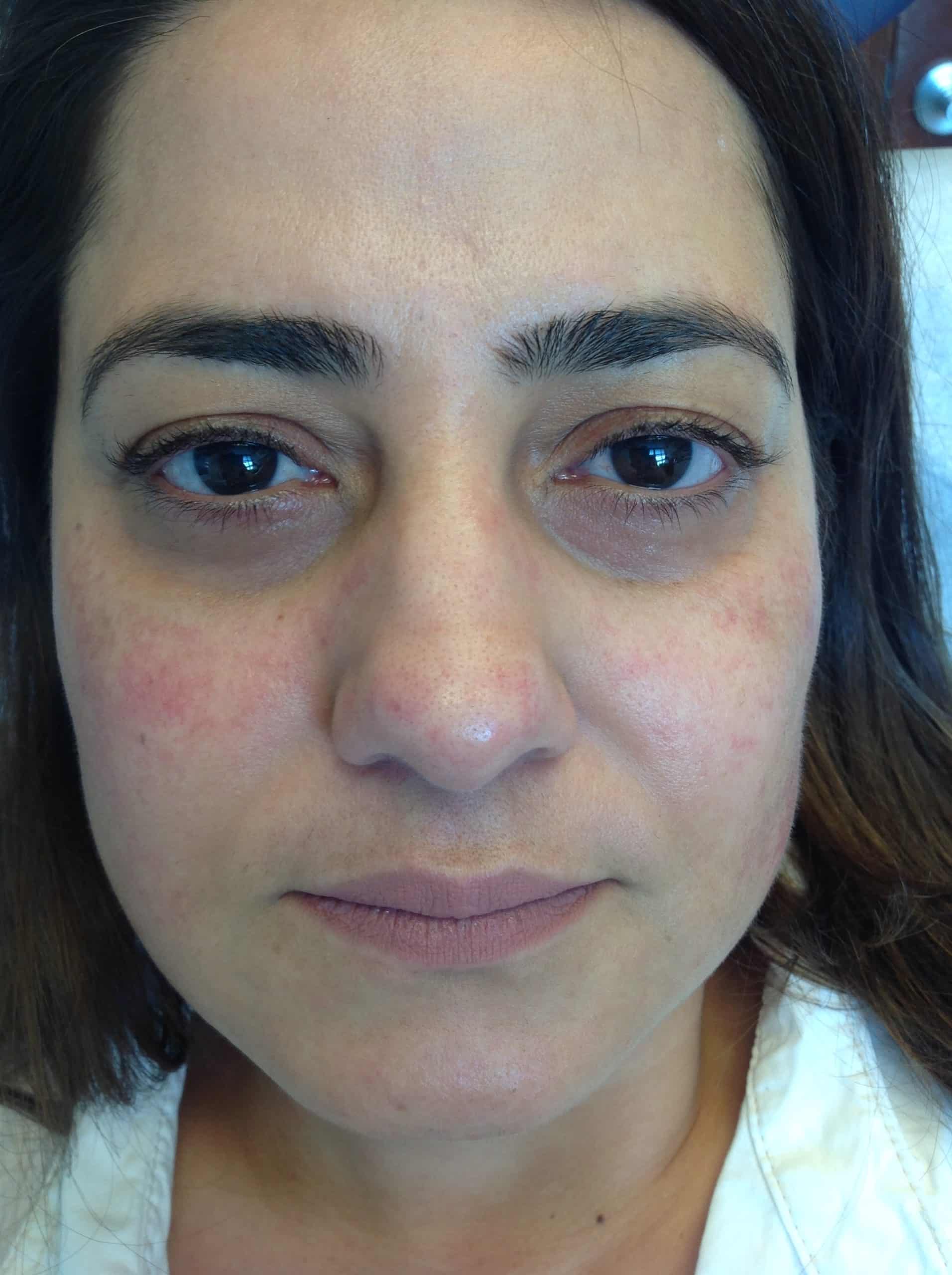 The different formulations of Juvederm are customized for different parts of the face including, the parenthesis around the mouth, also known as the nasolabial fold. Also, the lips can be plumped up, vertical lip lines can be smoothed out, the cheeks can be lifted, and the tear troughs (under the eyes) can be corrected. The pictures below show improvement with only two syringes done in two treatments for the tear troughs.