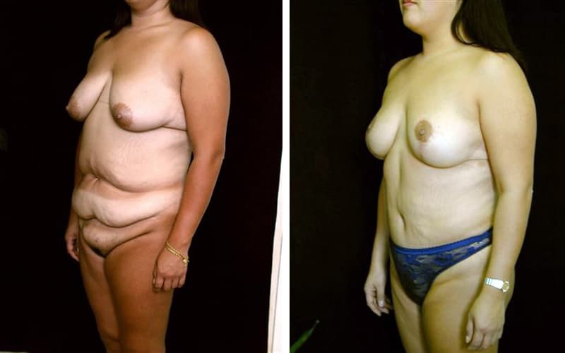 This is a 35-year-old resident of Marin County, California. She was seen for an abdominoplasty (tummy tuck), breast reduction and liposuction of the flanks. She lost a lot of weight by diet and exercise.