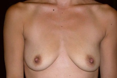 CASE DESCRIPTION: This is a 32-year-old, female resident of San Francisco, California who presented to the San Francisco office at Union Square for evaluation for breast augmentation. She is 5 feet 6 inches tall and weighs 118 pounds. She has one child. She underwent bilateral breast augmentation using Mentor silicone gel breast implants with a size of 325 ccs bilaterally. She underwent a peri-areolar incision with sub-muscular breast implant placement. The procedure was performed at Marin Cosmetic Surgery Center in Marin County, California. Her size increased from an A+ to a C cup.