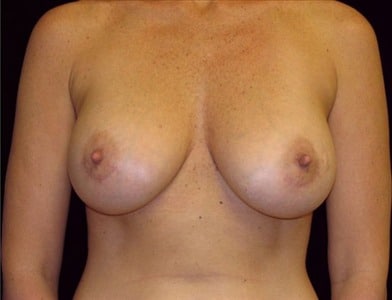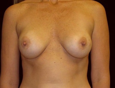 CASE DESCRIPTION: This is a 36-year-old, female resident of Palo Alto, California who presented to the San Francisco office at Union Square for evaluation for breast augmentation. She is 5 feet 8 inches tall and weighs 130 pounds. She has two children. She had normal-saline breast implants placed thirteen years ago, which were 270 ccs. Her desire was to change them to silicone breast implants. Due to the capsular contraction, she underwent a capsulectomy with a sub-mammary incision and changed the implants from a sub-mammary position to a sub-muscular position. The normal-saline breast implants were replaced with 550 ccs Mentor silicone breast implants. The procedure was performed at Marin Cosmetic Surgery Center in Marin County, California. She went from a size B to a full C.