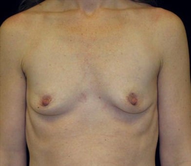 CASE DESCRIPTION: This is a 32-year-old, female resident of San Francisco, California who presented to the San Francisco office location at Union Square for evaluation for breast enhancement. She is 5 feet 6 inches tall and weighs 129 pounds. She is the mother of four. She underwent bilateral breast augmentation using Mentor silicone gel breast implants of size 325 cc bilaterally. The surgical approach was a peri-areolar incision with sub muscular implant placement. The procedure was performed at Marin Cosmetic Surgery Center in Marin County, California. She went from a size A to a B+.