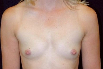 CASE DESCRIPTION: This is a 29-year-old, female resident of Mill Valley, California. She presented to the Novato office in Marin County for evaluation for breast augmentation. She is 5 feet 4 inches tall and weighs 126 pounds. She underwent bilateral breast augmentation using 300 cc Mentor silicone gel breast implants. The surgical approach was a peri-areolar incision and sub muscular placement of the breast implants. The procedure was performed at Marin Cosmetic Surgery Center in Marin County, California. She went from a size A to a B+ cup.