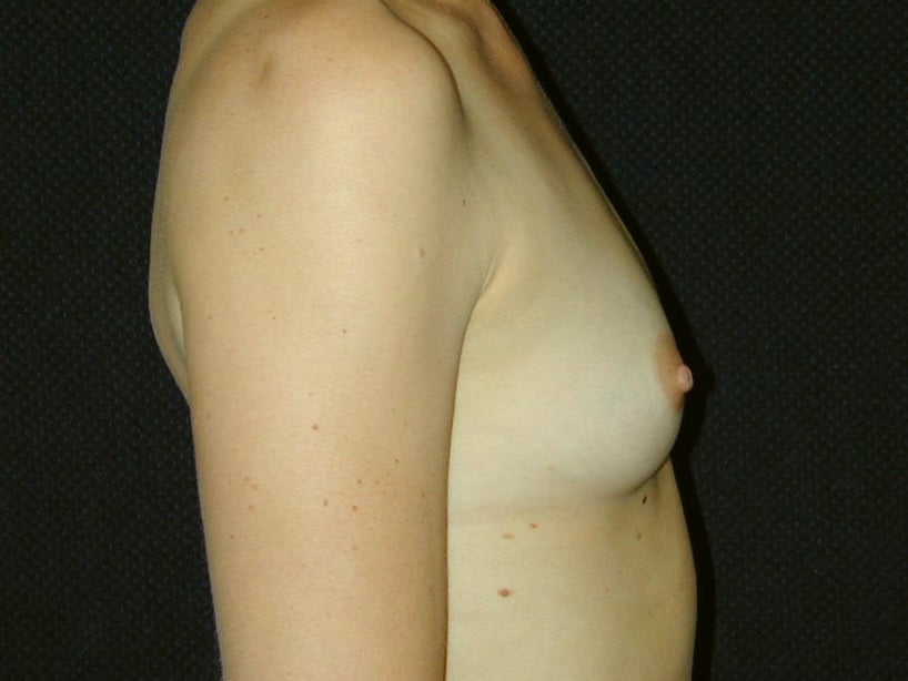 This is a 26 y.o. female 55? and 119 lbs who had breast augmentation through an infra-mammary fold incision with sub-muscular implant placement. The breast implants are 300 cc smooth round gummy bear silicone implants. She is seen 6 months after surgery. Her cup size went from 34A to 34C.