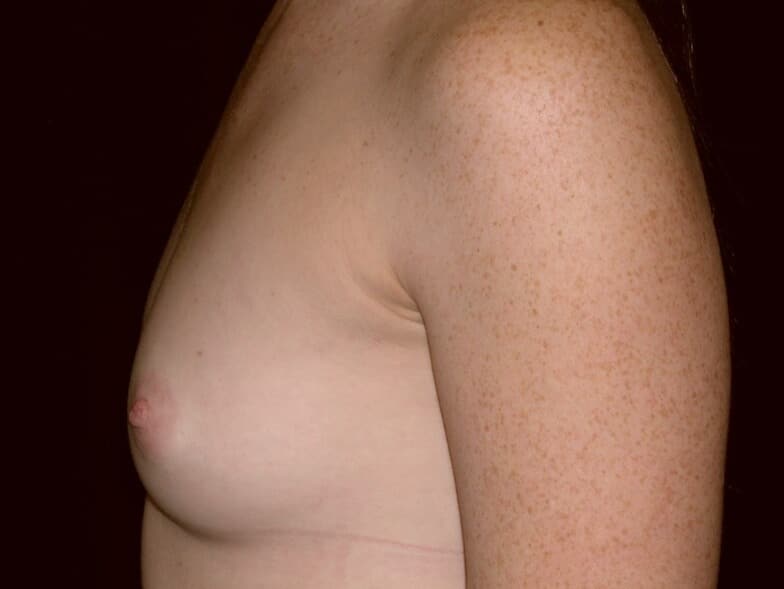 This is a 23 y.o. female 55? and 128 lbs who had breast augmentation through an areola incision with sub-muscular implant placement. The breast implants are 400 cc smooth round silicone implants. She is seen 6 months after surgery. Her incision is well healed. Her cup size went from 36B to 36D.