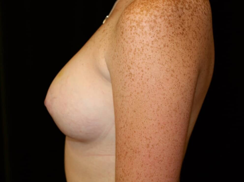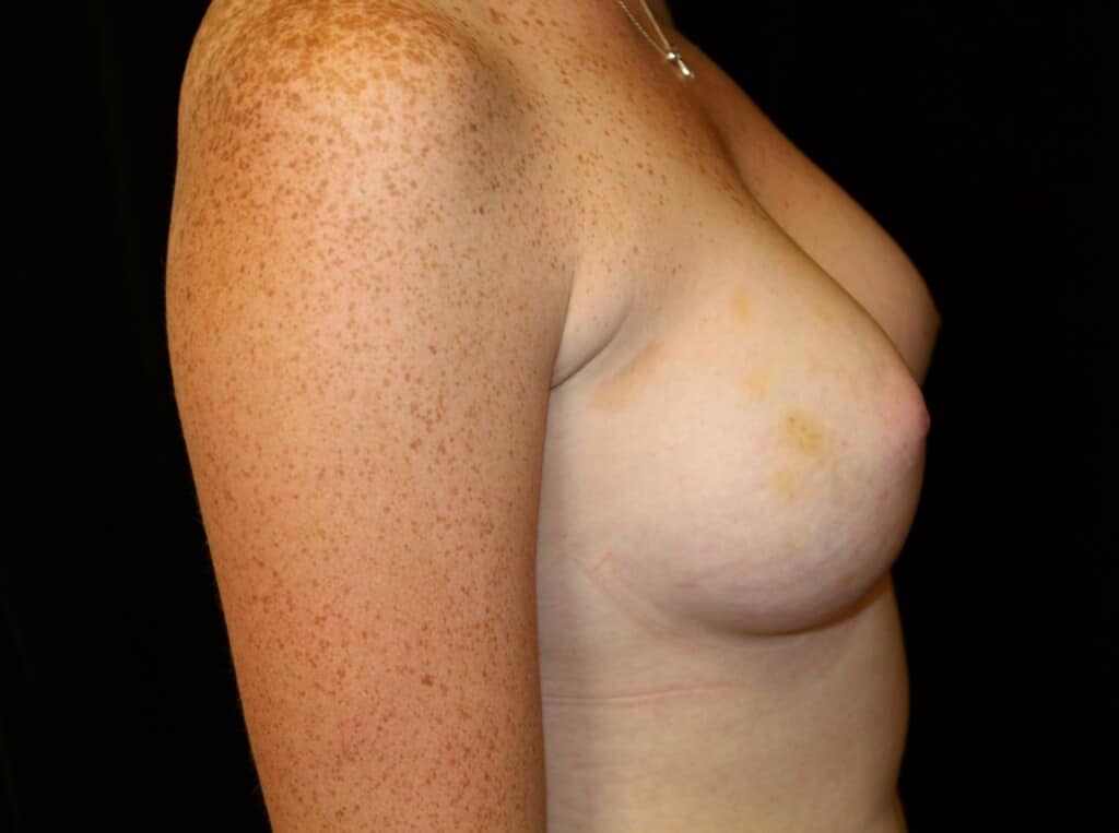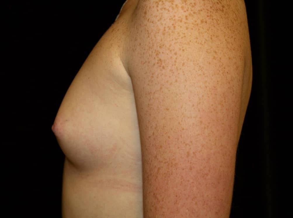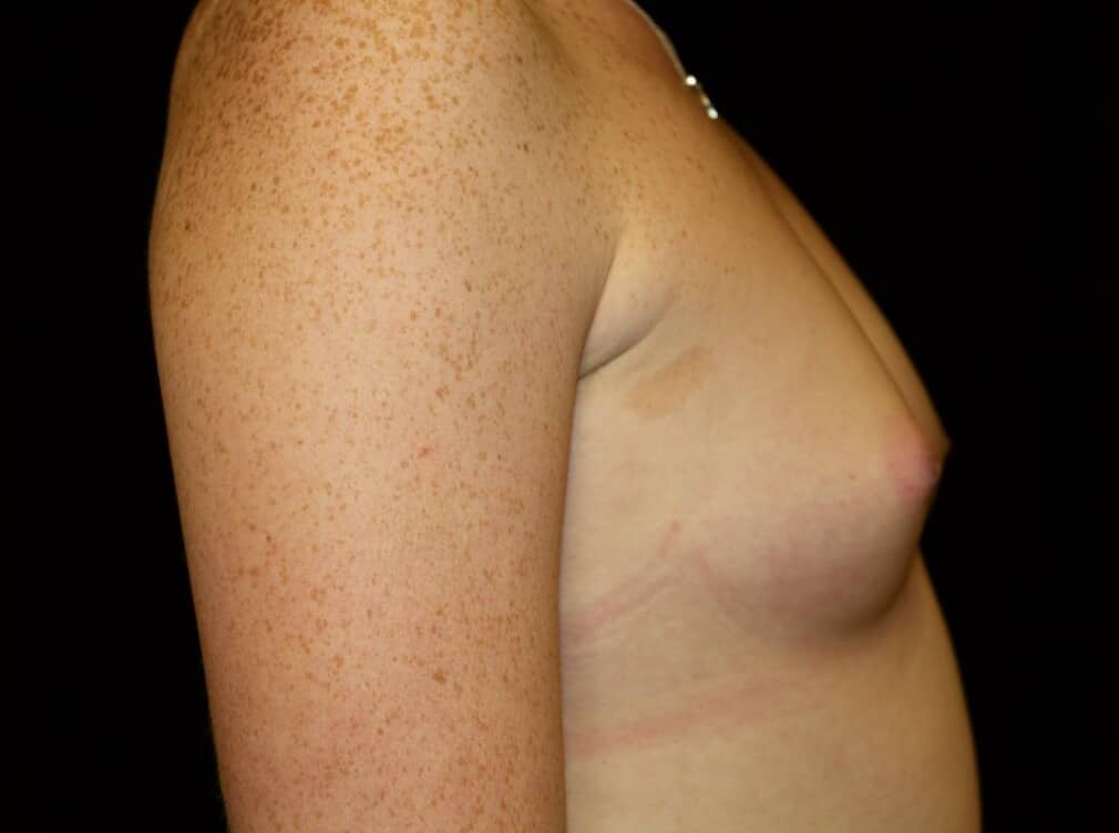 This is a 21 y.o. female 58? and 135 lbs who had breast augmentation through an infra-mammary fold incision with sub-muscular implant placement. The breast implants are 400 cc smooth round gummy bear silicone implants. She is seen 8 months after surgery. Her cup size went from 38B to 38D.