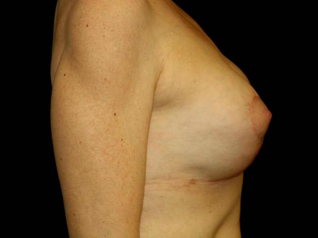 This is a 45 y.o. female who is 54 and 126 lbs who presents after her breast implants were removed due to infection. She waited 9 months before coming to our office so that the infection would clear completely and the scar tissue would soften. She had 275cc silicone gummy bear implants with a verticle breast lift. Her post-operative photos are shown 6 months after surgery.