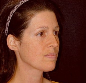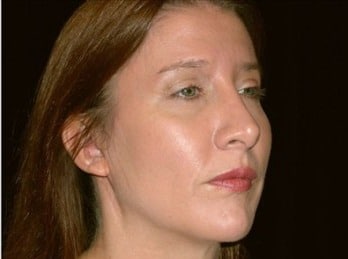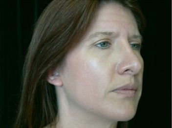 CASE DESCRIPTION: This is a 41-year-old, female resident of Sonoma, California who presented to the Novato office in Marin County for evaluation of the upper face region. She underwent an endoscopic brow lift with fat injections of her cheeks. She had 11 cc of fat injected into each cheek location. Her endoscopic eyebrow lift raised her brows 8 millimeters on both sides. Her procedure was performed at Marin Cosmetic Surgery Center in Marin County, California. Note the gentle fullness in the cheek area.