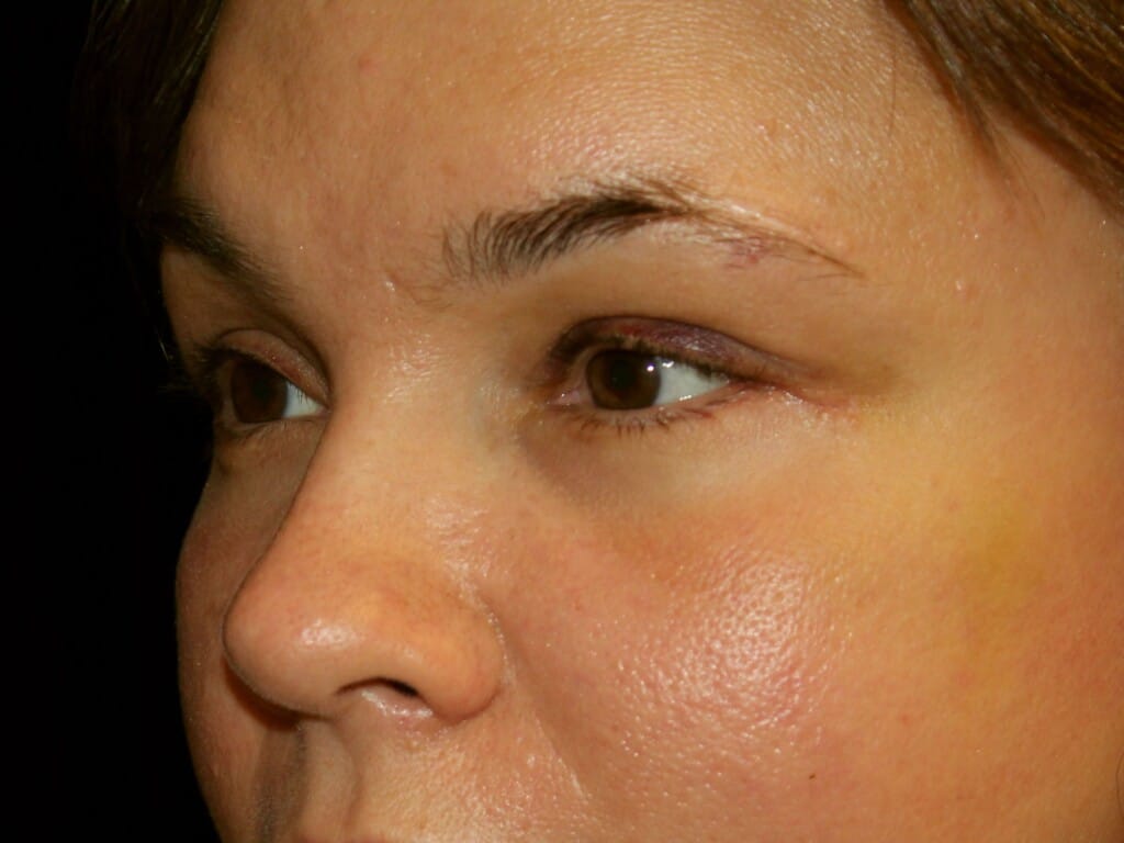 This is a 37 y.o. female who presents with eyebrow ptosis with skin laxity of the upper eyelids and fat herniation of the lower eyelids. Her goal is to rejuvenate the upper face region. She had an endoscopic forehead lift and upper and lower eyelid lift. Her post-operative photos are seen 6 months after surgery.