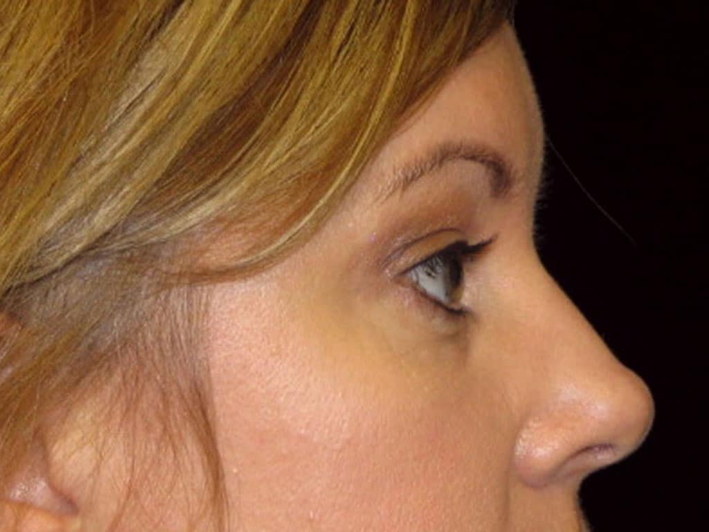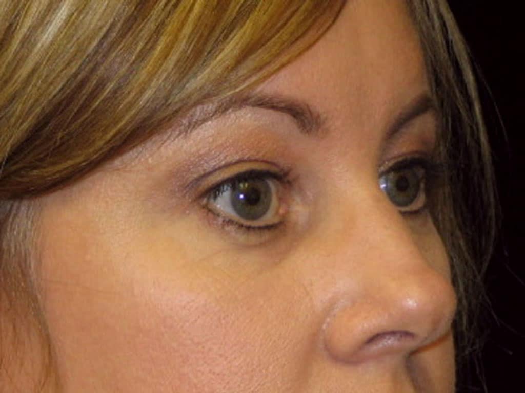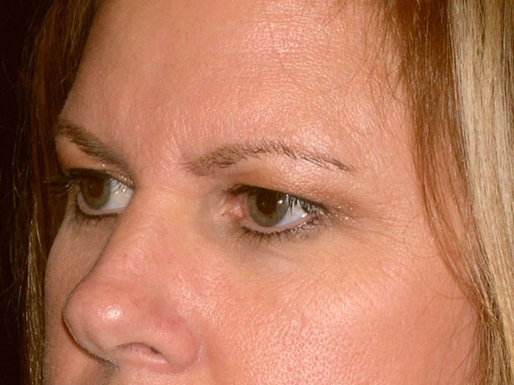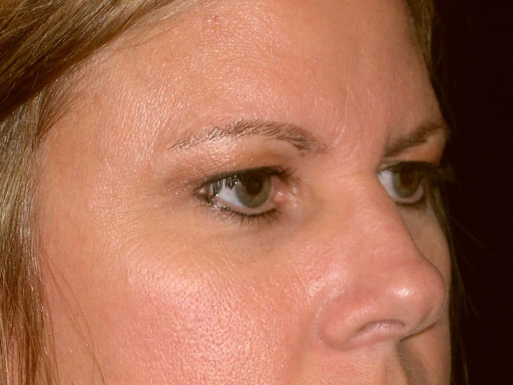 This is a 35 y.o. female who presents with eyebrow ptosis or laxity. Her goal is to open-up her upper eyelid region and get rid of the heaviness she feels. She had an endoscopic forehead lift only. Her post-operative photos are seen 6 months after surgery.