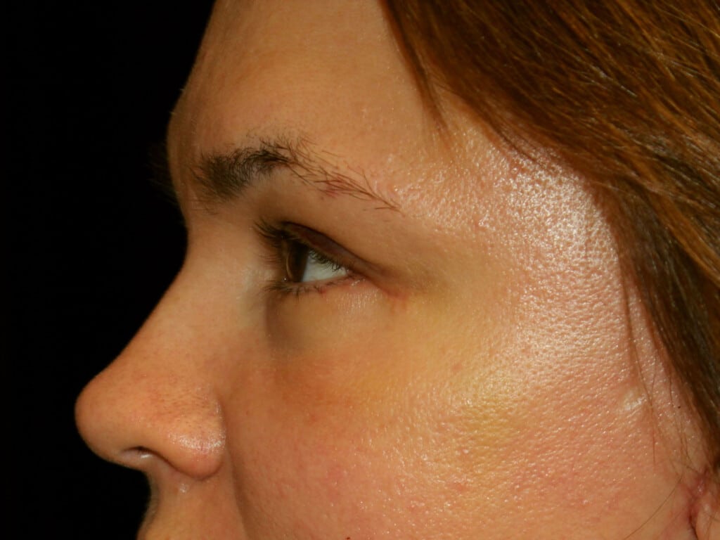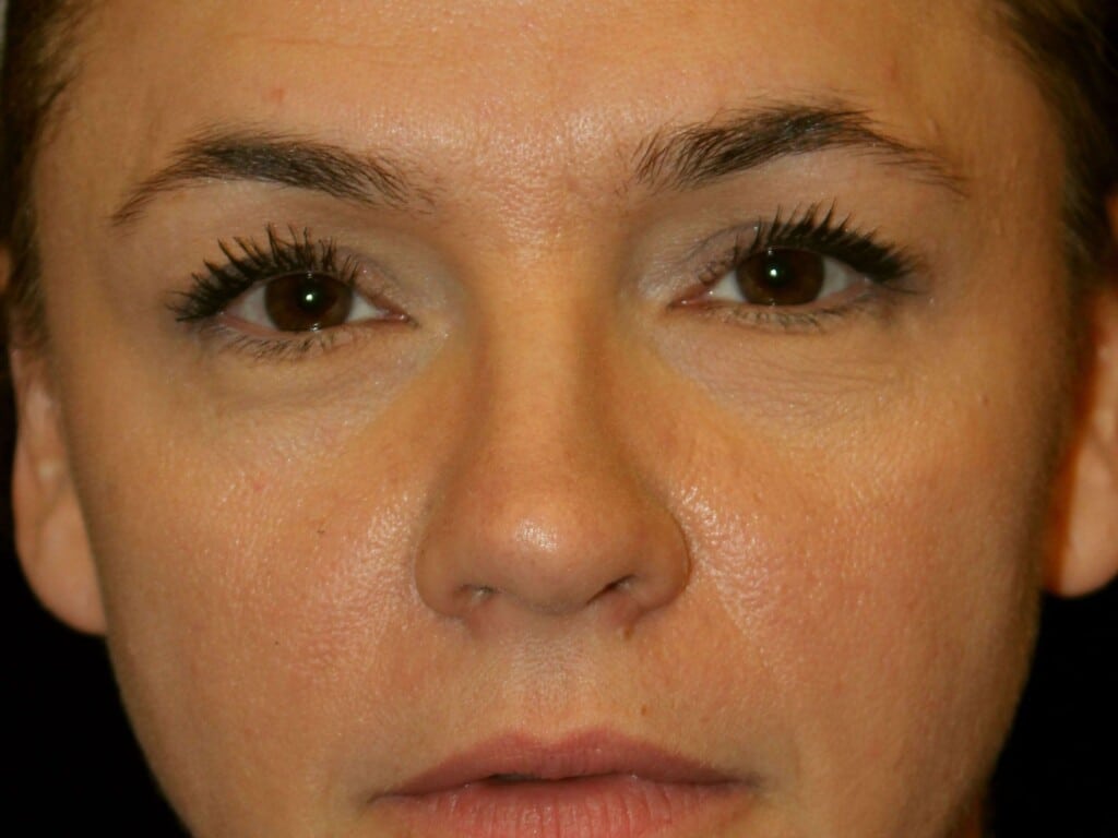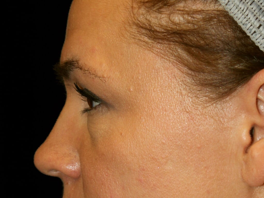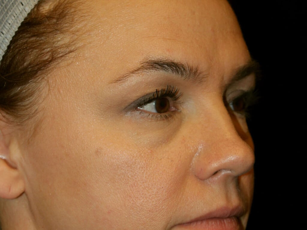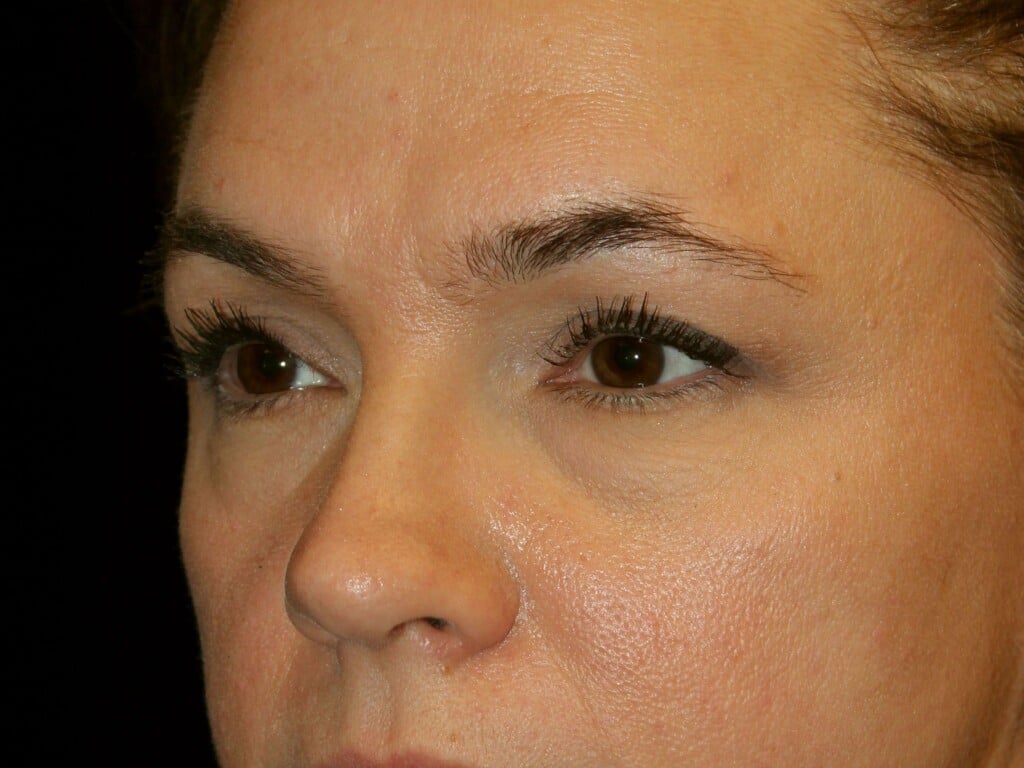 This is a 43 y.o. female who presents with eyebrow ptosis, upper eyelid skin redundancy, and lower eyelid puffiness. Her goal is to rejuvenate the upper face region. She had an endoscopic forehead lift with an upper and lower eyelid lift. Her post-operative photos are seen 6 months after surgery.