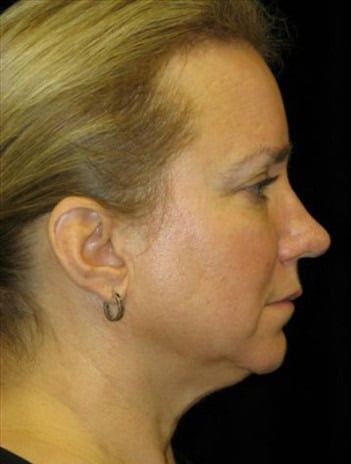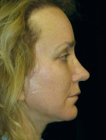 CASE DESCRIPTION: This is a 48-year-old resident of San Francisco, California, who presented to the San Francisco office at Union Square for evaluation for facial aging. Her primary complaints were the aging face and her small, aging chin. She underwent a full facelift, which included an endoscopic browlift, upper and lower lid eyelid lift and a face and neck lift. She also underwent a chin implant, which was an anatomic, medium-sized silicone implant. Her photographs are seen at nine months after surgery. The procedure was performed at Marin Cosmetic Surgery Center in Marin County, California.