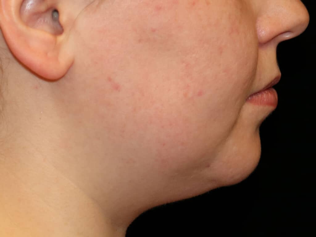 This is a 29 y.o. female who presents for neck liposuction and chin augmentation. She had power-assisted liposuction (PAL) of her neck. Her chin augmentation is with a medium anatomical chin implant. She is photographed 6 months after surgery.