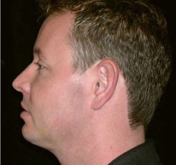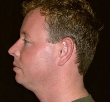 CASE DESCRIPTION: This is a 34-year-old, male resident of the Bay Area, San Francisco, who presented to the San Francisco office at Union Square for an evaluation for a neck lift. He complained of fullness around his neck and the lack of definition of his jaw line. In addition, he wanted a stronger male profile. A silicone chin implant was suggested. He underwent a neck left, which included liposuction of the neck region, a platysma muscle tightening and mastoid jaw definition suture. He also had a medium anatomic silicone chin implant. The procedure was performed at Marin Cosmetic Surgery Center in Marin County, California. Notice the better angle of his jaw line.