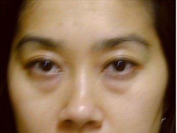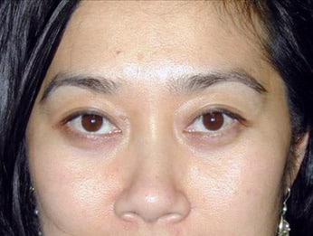 CASE DESCRIPTION: This is a 27-year-old resident of San Francisco, California who presented to the San Francisco office at Union Square for evaluation for a lower eyelid lift (blepharoplasty). Her complaint was the fullness under the eyelids. She underwent a transconjunctival blepharoplasty at Marin Cosmetic Surgery Center in Marin County, California. A transconjunctival blepharoplasty is done through the interior of the eyelid; therefore, there is no external incision. The photos are seen six months after surgery.