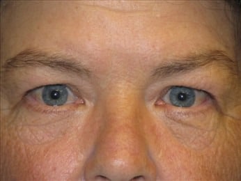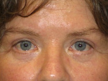 CASE DESCRIPTION: This is a 64-year-old, female resident of San José , California who presented to the San Francisco office at Union Square for evaluation for an upper and lower lid blepharoplasty. Her complaints were the heaviness of the upper eyes as well as the puffiness of the lower eyelids and the poor skin quality. She underwent an endoscopic browlift and upper and lower lid blepharoplasty with a TCA peel. Her photographs are seen at six months after surgery. Note the more youthful appearance and the natural appearance of her face.