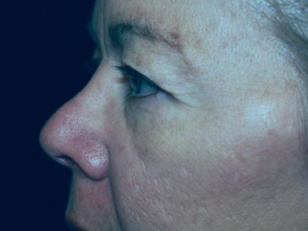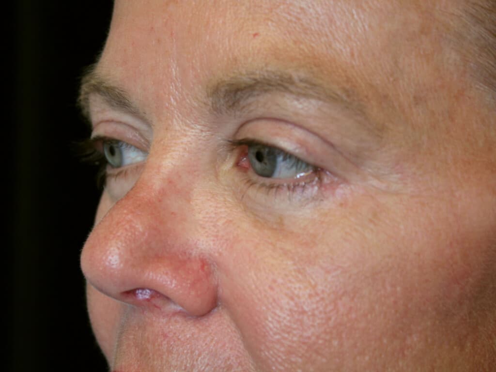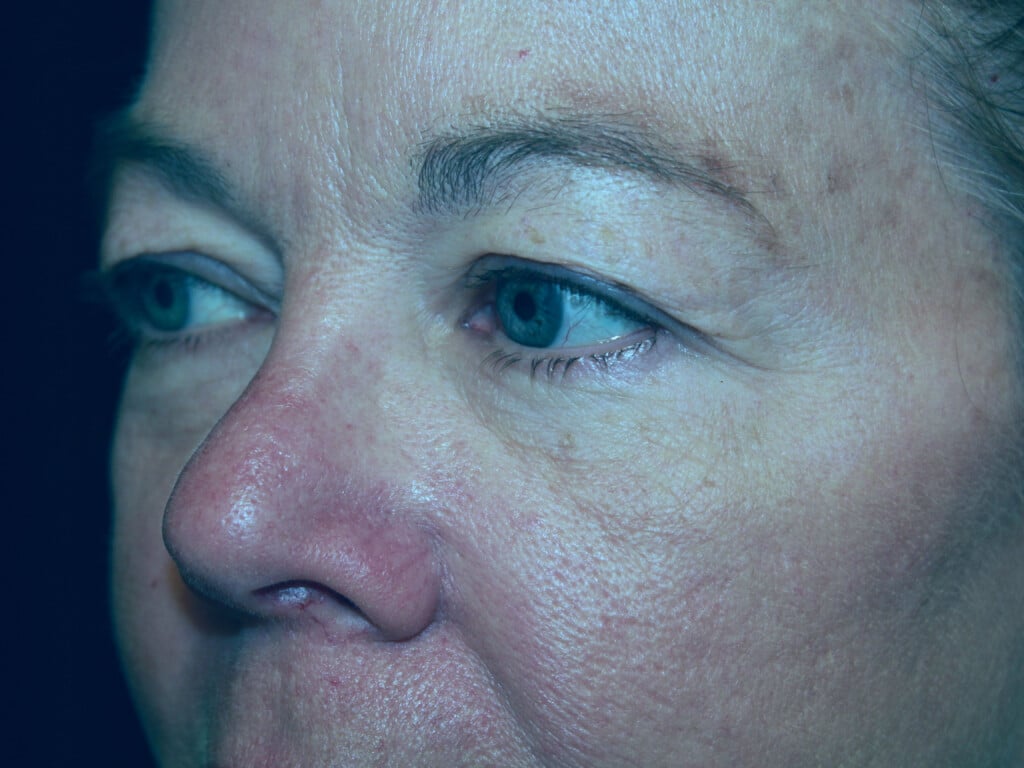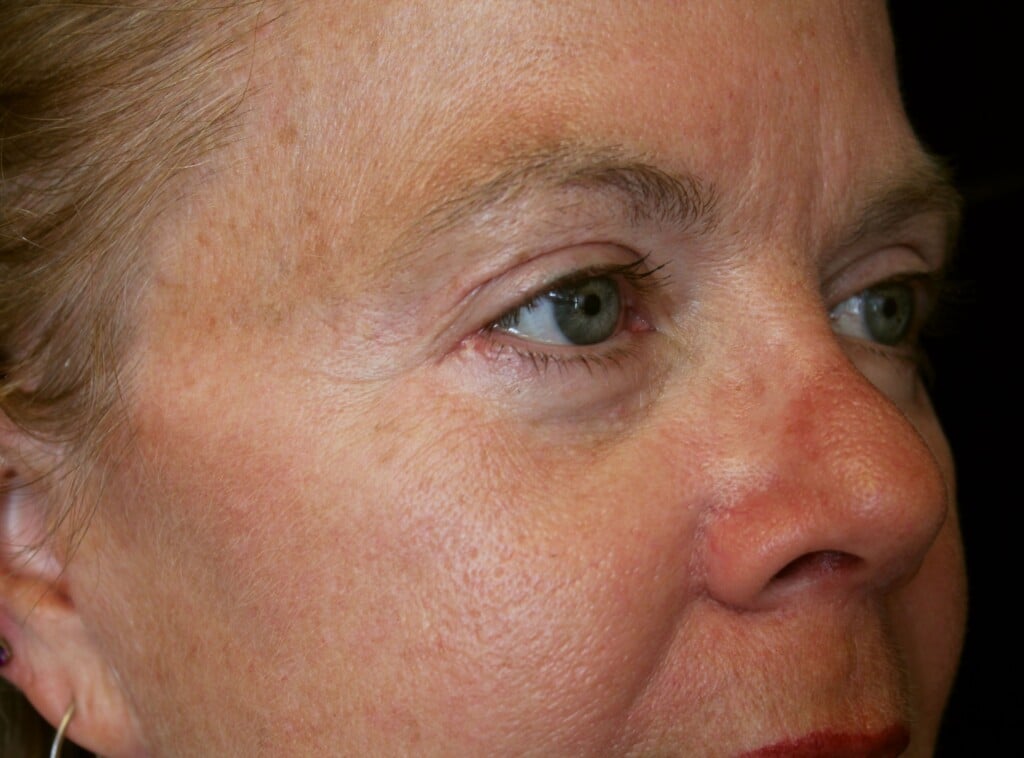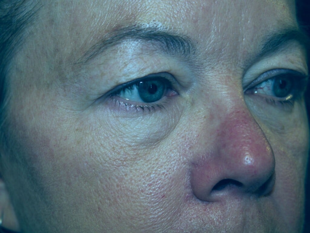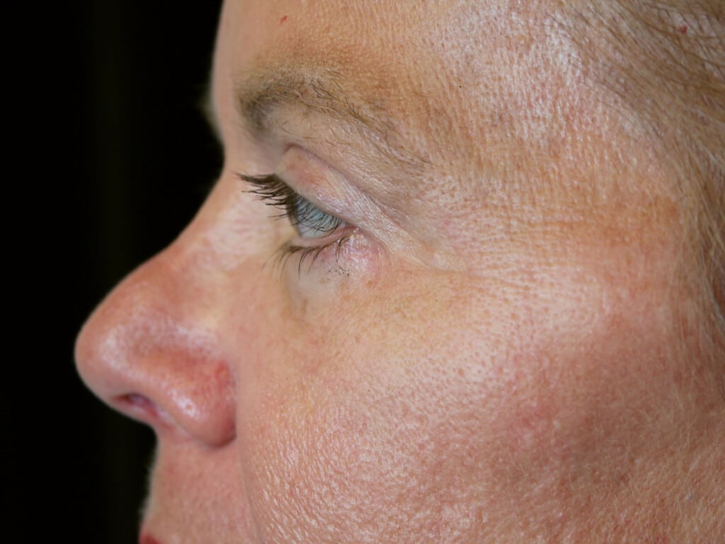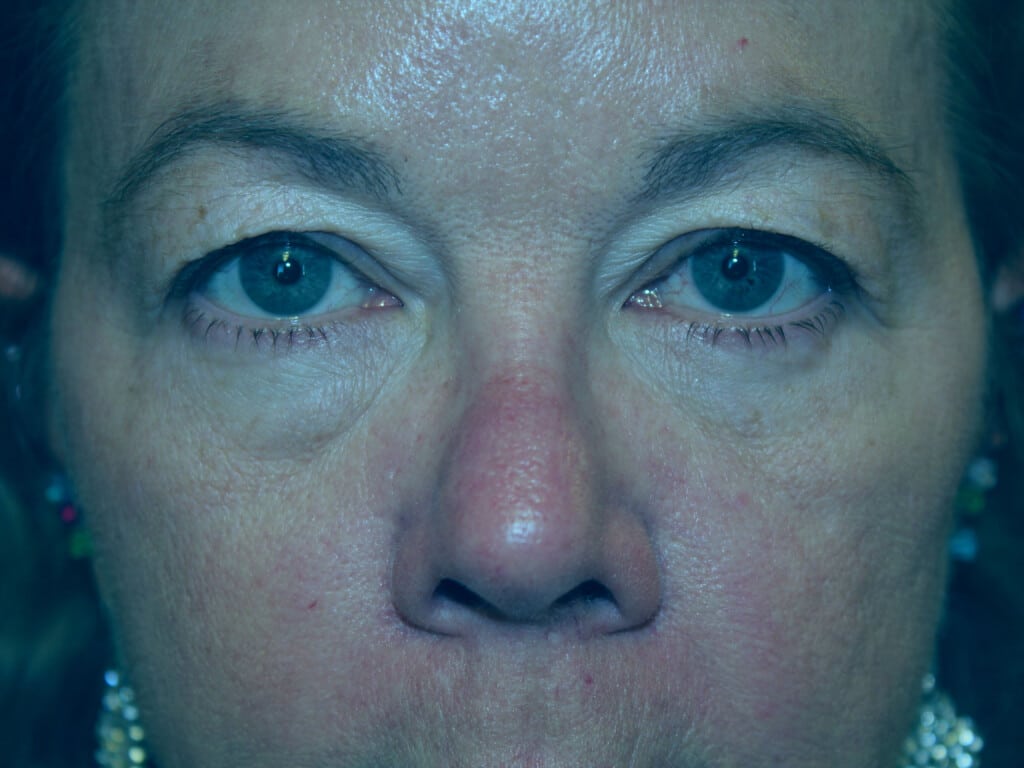 Case Description: This is a 53 y.o. female who complains of heavy upper eyelids and bags in the lower eyelids. She had an upper and lower eyelid lift or blepharoplasty. Her incision was made just below the eyelash line in the lower eyelid. Her photos are taken 6 months after surgery.