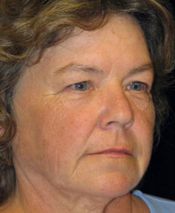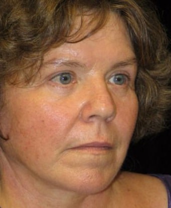 CASE DESCRIPTION: This is a 61-year-old, female resident of Mill Valley, California who presented to the Novato office in Marin County for evaluation for facial rejuvenation. She underwent a temporal eyebrow lift, upper lid eyelift and a facelift with a TCA chemical peel. Her goal was to have a more youthful appearance. Her lower eyelid surgery was accomplished through an external incision and muscular tightening with tightening of the lower eyelids. Her facelift included a SMASectomy to reduce the volume in her face. Her surgery was performed at Marin Cosmetic Surgery Center in Marin County, California.