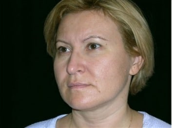 CASE DESCRIPTION: This is a 45-year-old, female resident of San Francisco, California who presented to the San Francisco office at Union Square for evaluation for a facelift. She underwent an endoscopic eyebrow lift, lower lid eyelid lift, facelift, lip augmentation and fat grafting to her cheeks, nasolabial fold and marionette lines. In addition, she had a TCA chemical peel. Her eyelids were performed through an external lower eyelid incision with muscle tightening and lower lid tightening. She had a SMASectomy with her lower facelift. The SMASectomy tissue was used to enhance her upper and lower lip. The endoscopic brow lift elevated the brows 6 millimeters bilaterally. The surgery was performed at the Marin Cosmetic Surgery Center in Marin County, California. Note her natural, full, youthful appearance to her face.