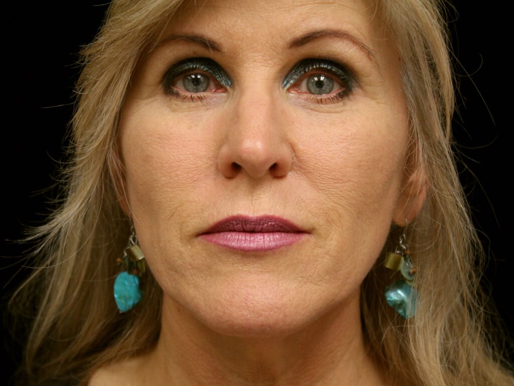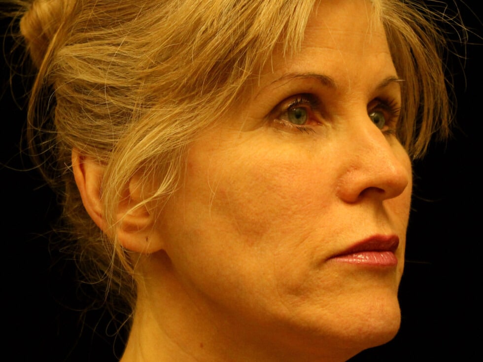 This is a 45 y. o. female who presents with the aging face. Her primary complaint was the early jowl formation and the skin laxity of the neck. She had a modern-day SMAS facelift which includes the mid-face, jowl, and neck rejuvenation. She is seen 6 months after surgery.