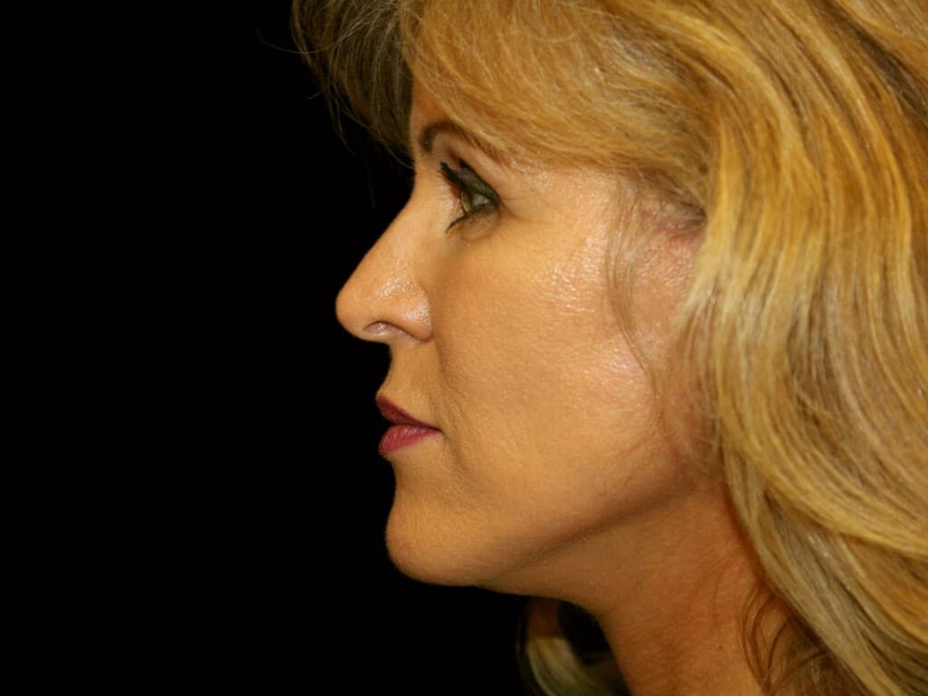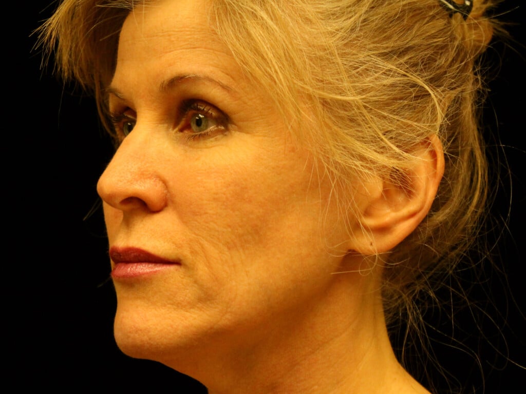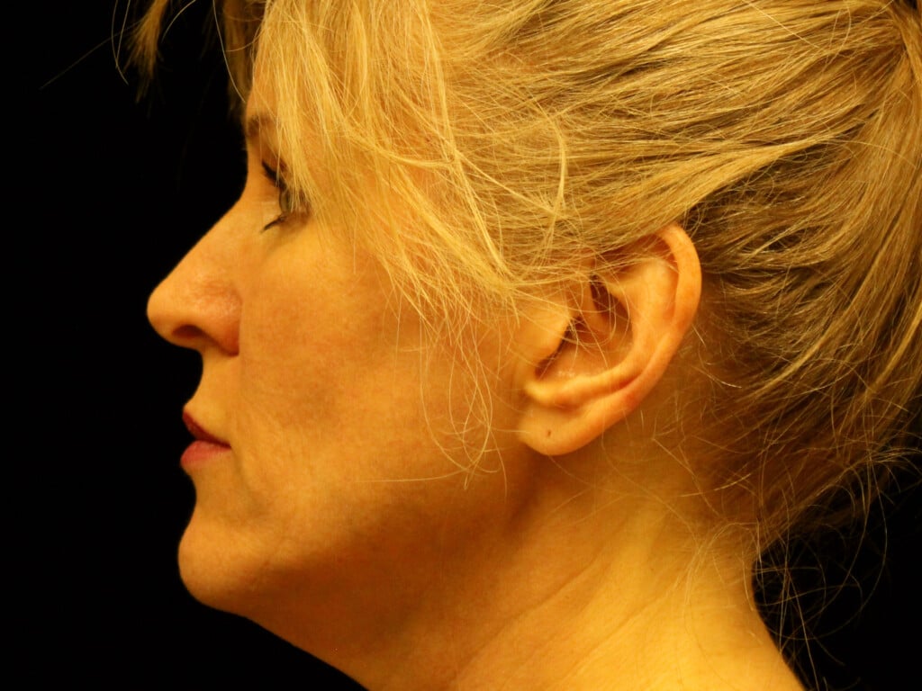 Note the natural fullness in the cheek area and the elegant jaw-line.