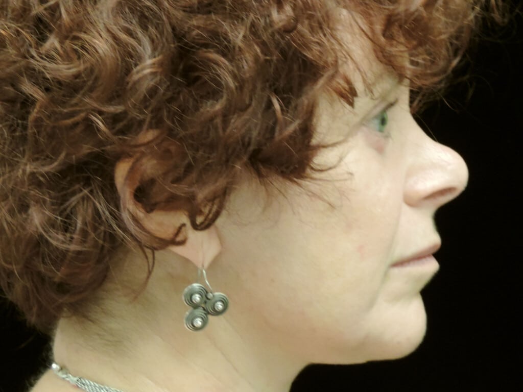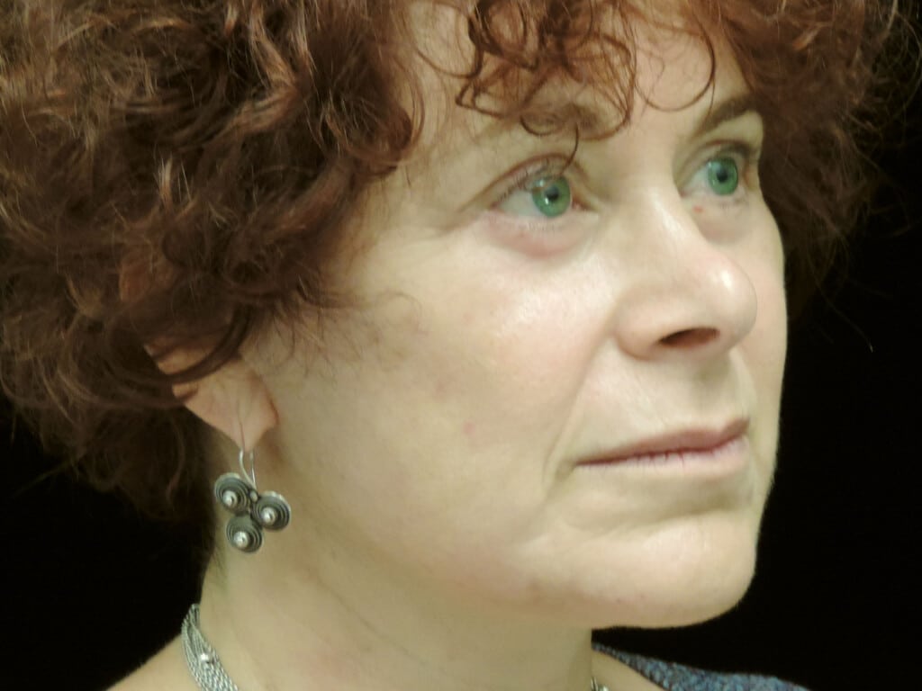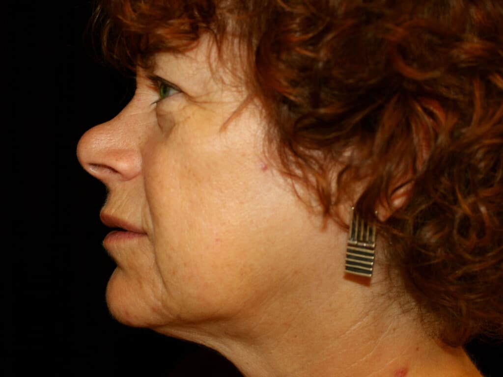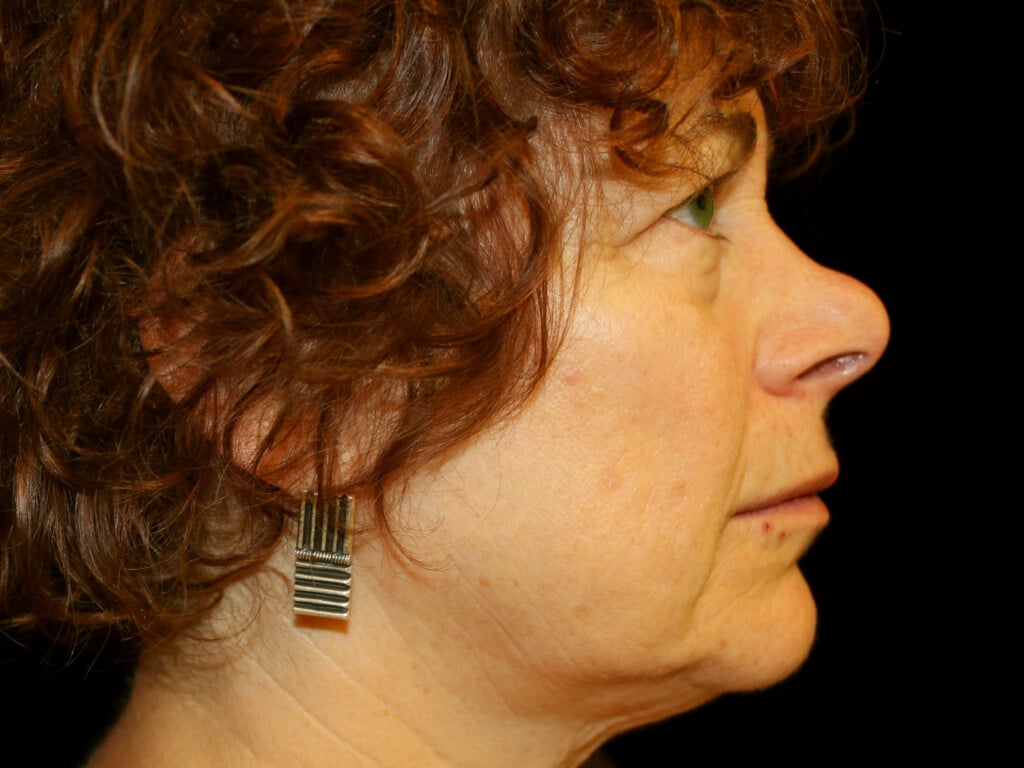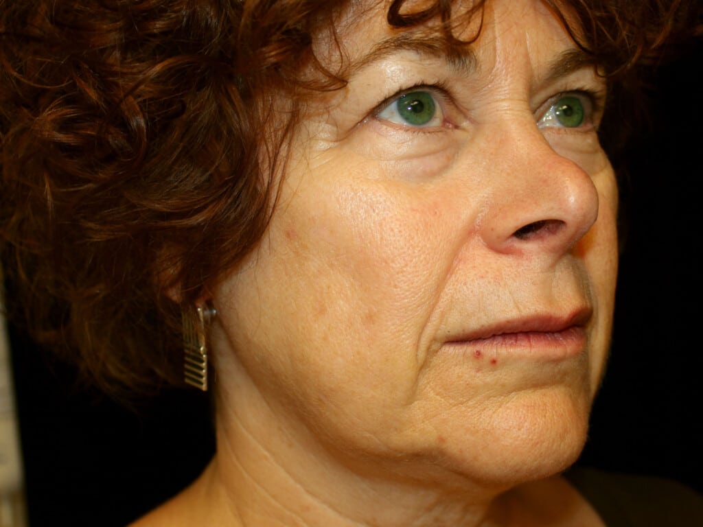 This is a 55 y. o. female with concerns of the aging around the eyes, obvious jowl formation, and loose neck skin. She had a modern-day SMAS facelift which includes the mid-face, jowls, and neck rejuvenation. In addition, she had an upper and lower eyelid lift (blepharoplasty),