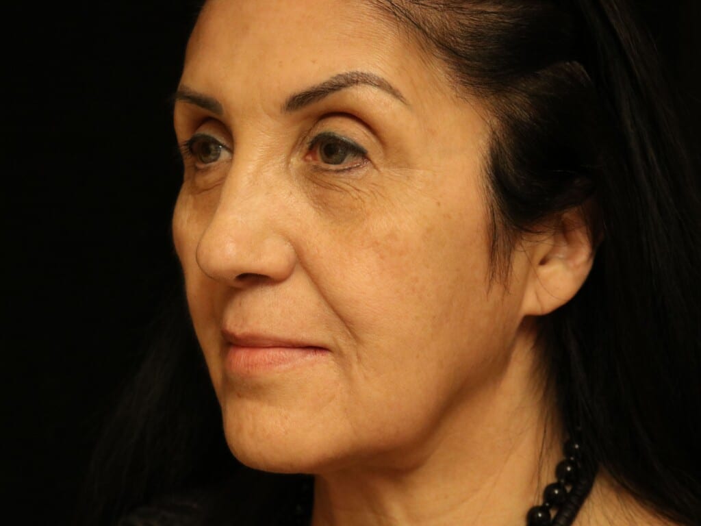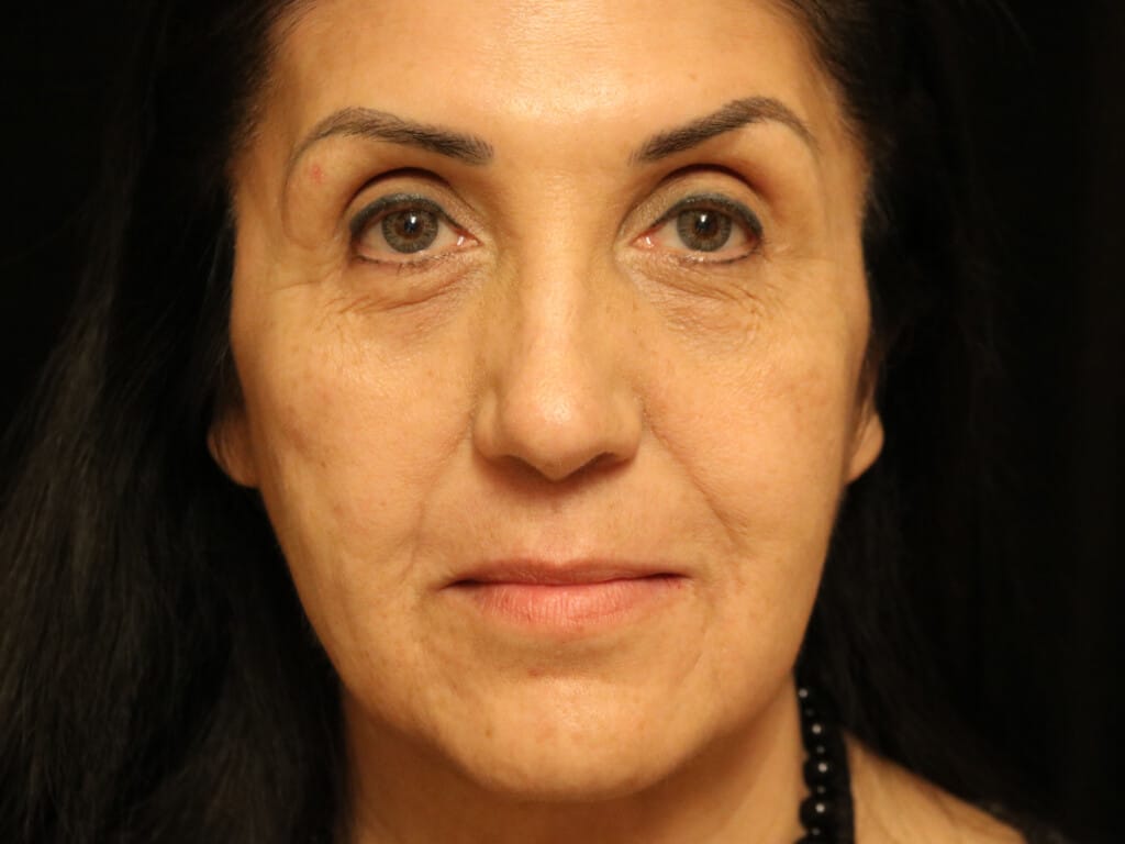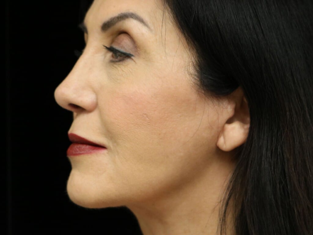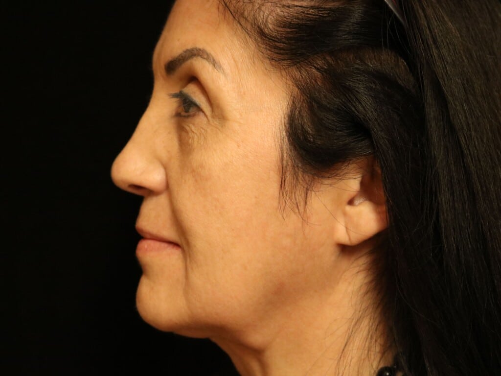 This is a 70 y. o. female who presents with the primary complaints of jowls and lack of neck definition. She had a modern-day facelift which includes the mid-face, jowls, and neck rejuvenation. In addition, she had fat injections to her face for volume rejuvenation and a pre-jowl chin implant. She is seen 9 months after surgery.