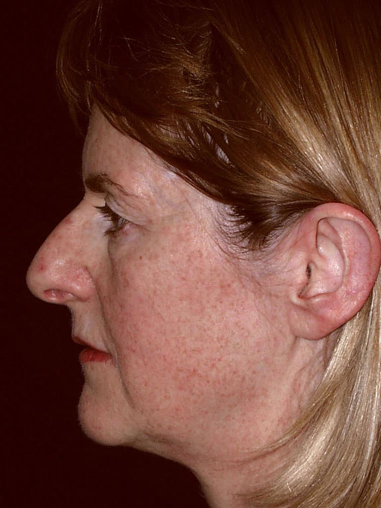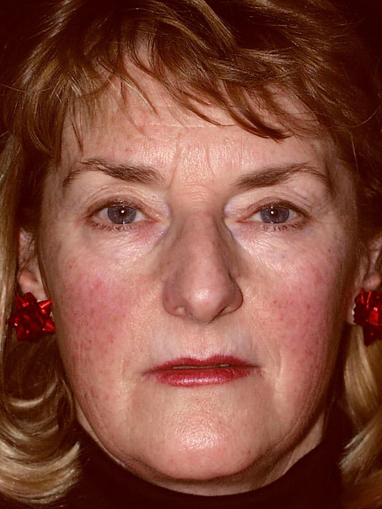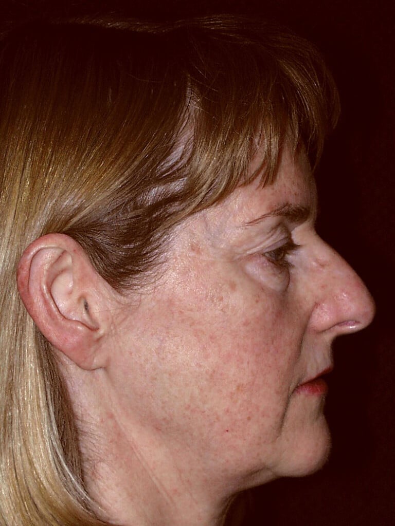 This is a 63 y. o. female who presents with the aging face. She had a modern-day SMAS facelift which includes the mid-face, jowls, and neck rejuvenation. She has also had an upper and lower eyelid lift (blepharoplasty), and a rhinoplasty. She is seen 6 months after surgery.