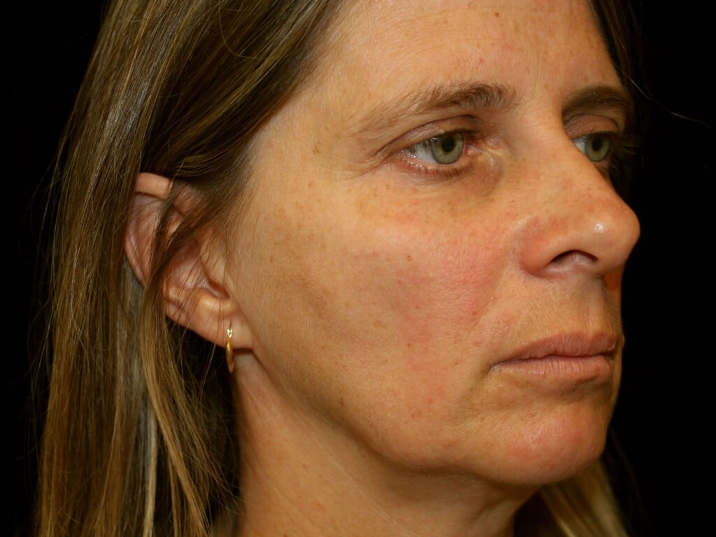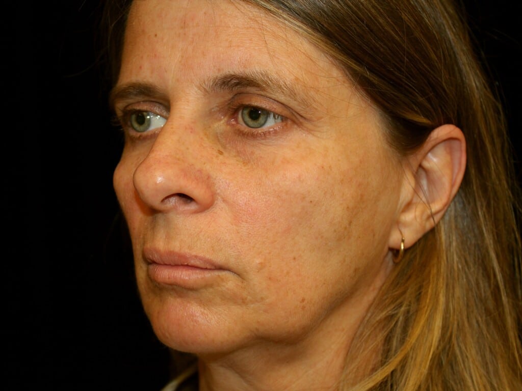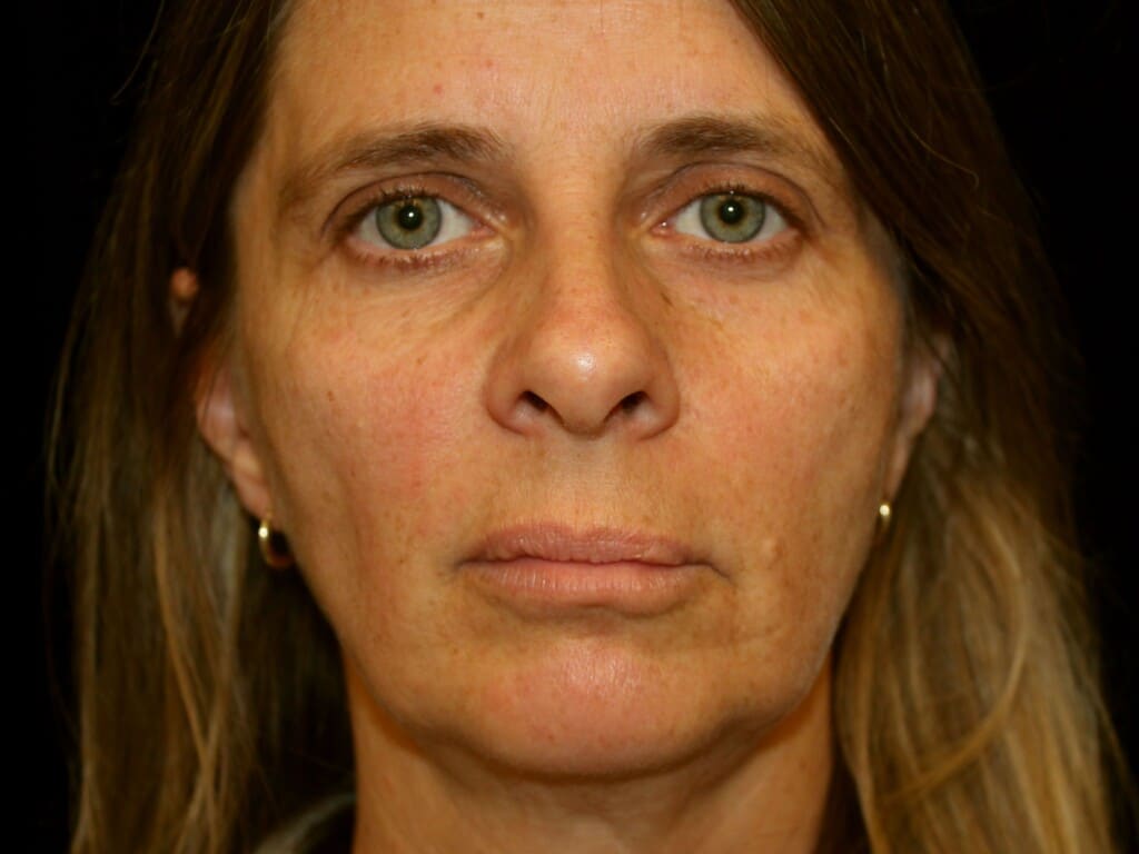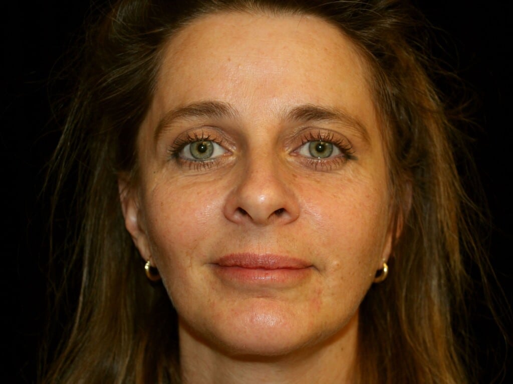 This is a 55 y. o. female who presents with the aging face. Her concern is aging of the upper face and the jowls. She had a modern-day SMAS facelift. This includes the mid-face, jowl, and neck rejuvenation. In addition, she had a brow lift, fat injections for volume replacement. She is seen 6 months after surgery.
