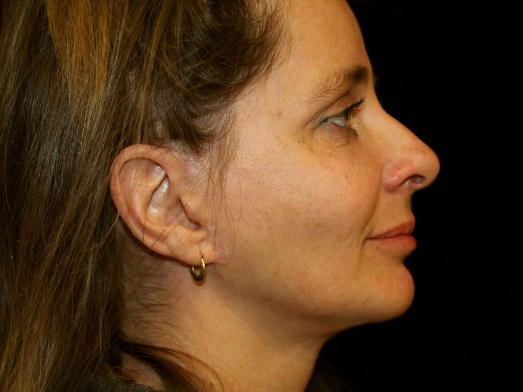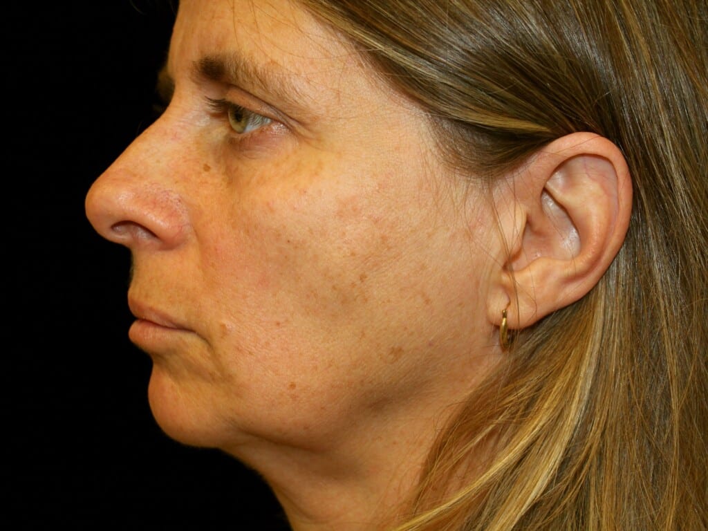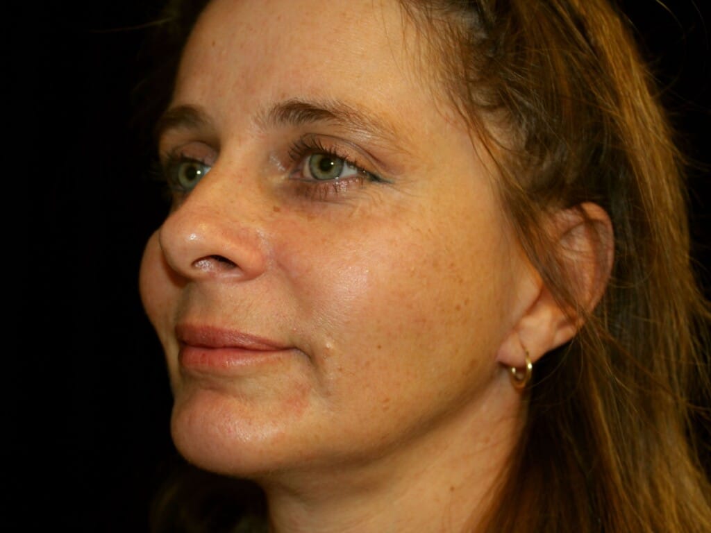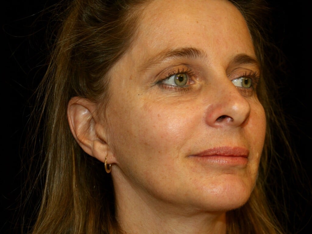 This is a 55 y. o. female who presents with the aging face. Her concern is aging of the upper face and the jowls. She had a modern-day SMAS facelift. This includes the mid-face, jowl, and neck rejuvenation. In addition, she had a brow lift, fat injections for volume replacement. She is seen 6 months after surgery.