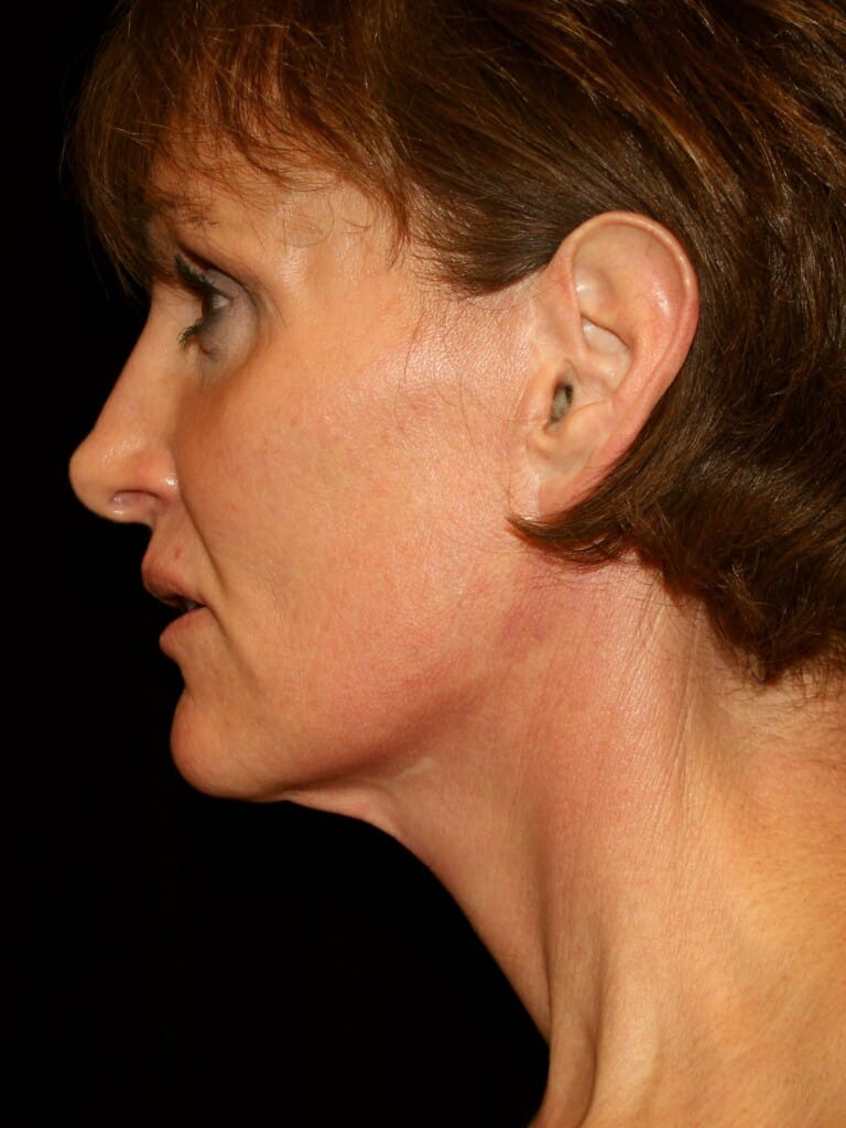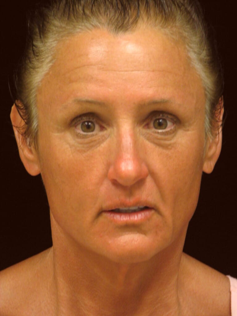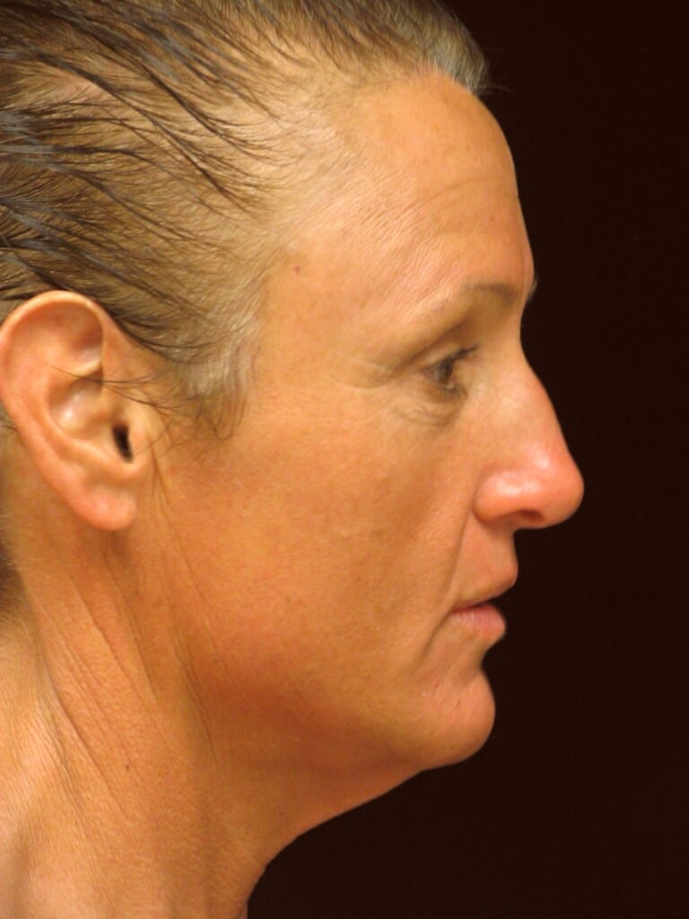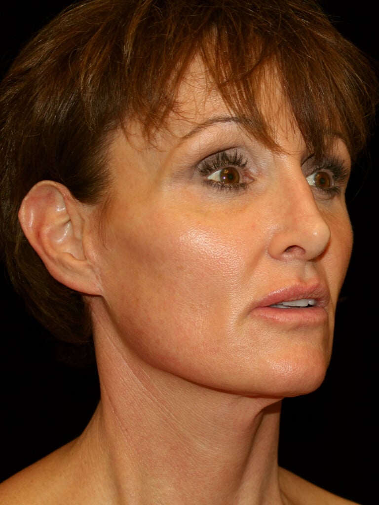 This is a 52 y. o. female who presents with the aging face after massive weight loss. Her goal is to have overall facial rejuvenation. She had a modern-day SMAS facelift which includes the mid-face, jowl, and neck rejuvenation. In addition, She had a lower eyelid lift (blepharoplasty), endoscopic brow lift, rhinoplasty, fat injections for facial volume, chin implant, and a TCA chemical peel. She is seen 6 months after surgery.