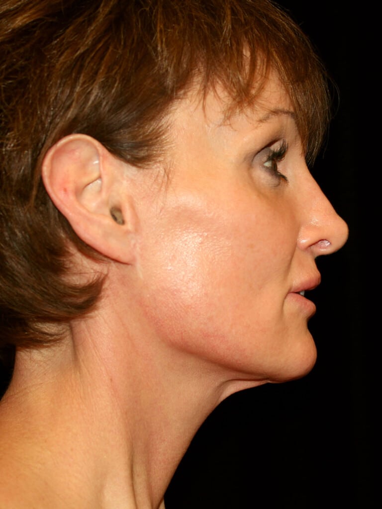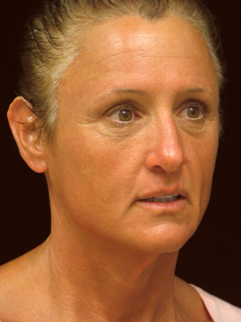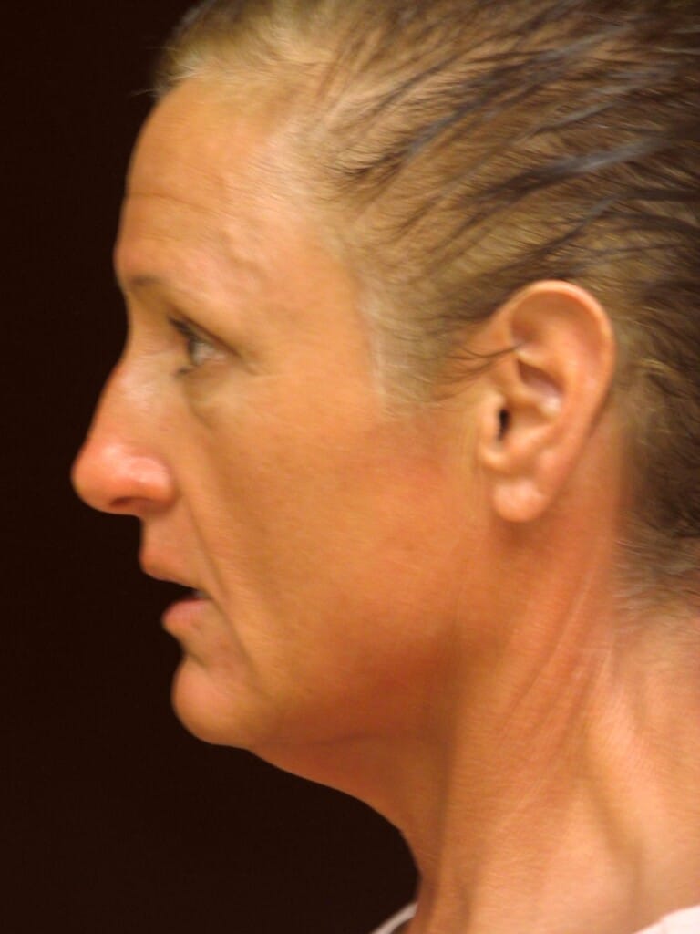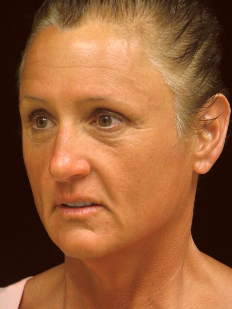 This is a 52 y. o. female who presents with the aging face after massive weight loss. Her goal is to have overall facial rejuvenation. She had a modern-day SMAS facelift which includes the mid-face, jowl, and neck rejuvenation. In addition, She had a lower eyelid lift (blepharoplasty), endoscopic brow lift, rhinoplasty, fat injections for facial volume, chin implant, and a TCA chemical peel. She is seen 6 months after surgery.