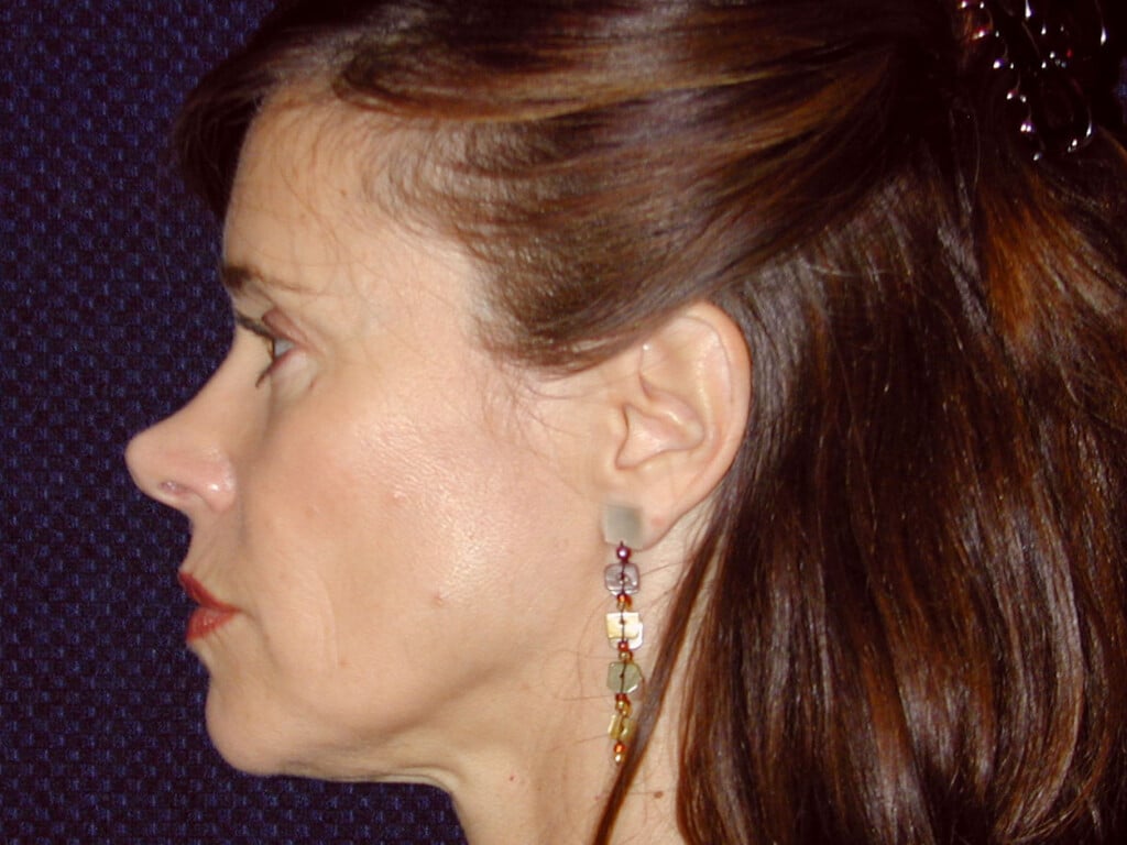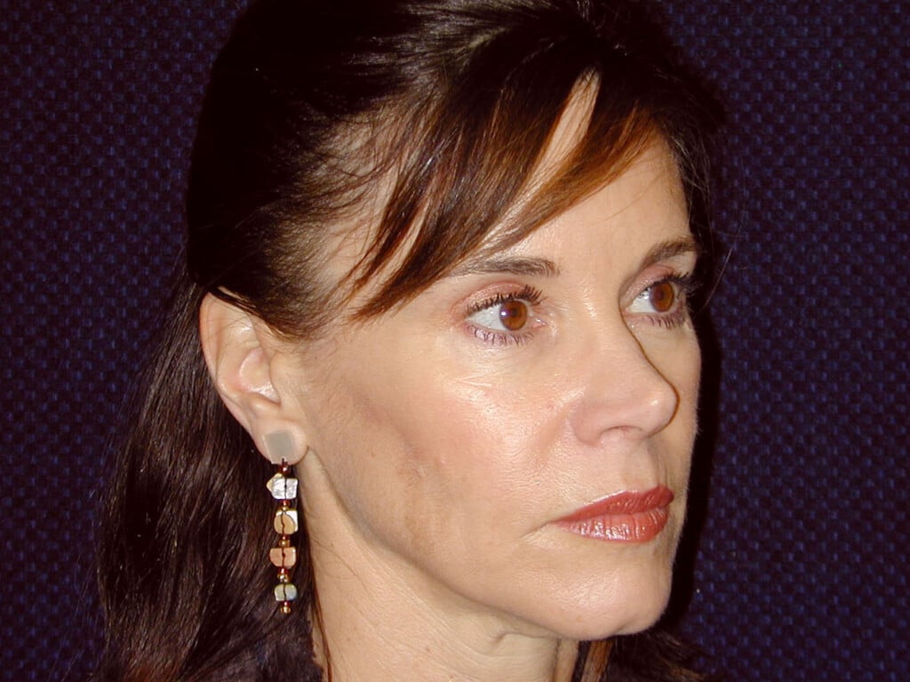 This is a 49 y. o. female who presents with complaints of jowls and redundant neck skin. She had a modern-day SMAS facelift which includes the mid-face, jowl, and neck rejuvenation. She is seen 6 months after surgery.