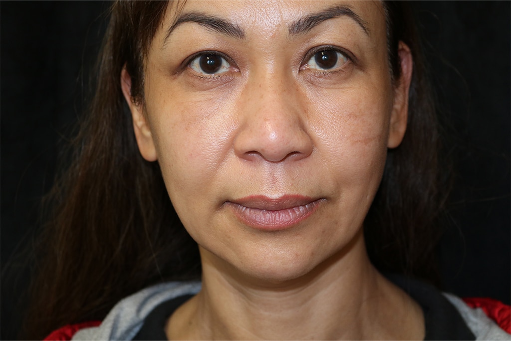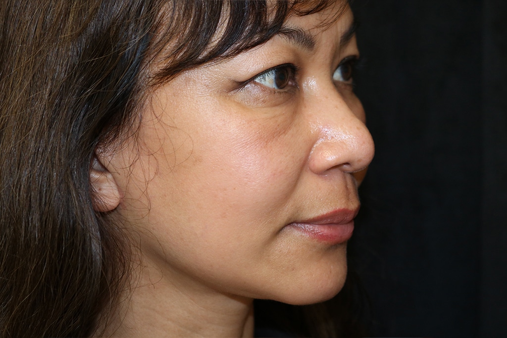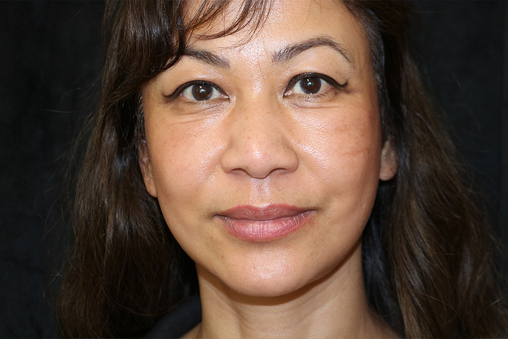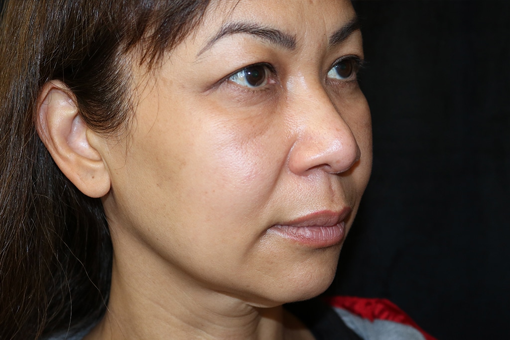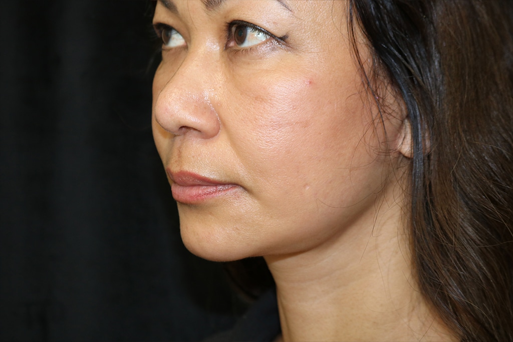 This patient is a 45-year-old female who presents with prominent jowls and skin laxity in her neck. She underwent a short scar lower facelift (SMAS vertical lift) to improve her jowls and neck. Her photos are approximately three months after surgery.
