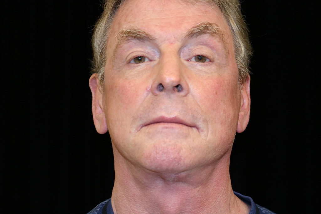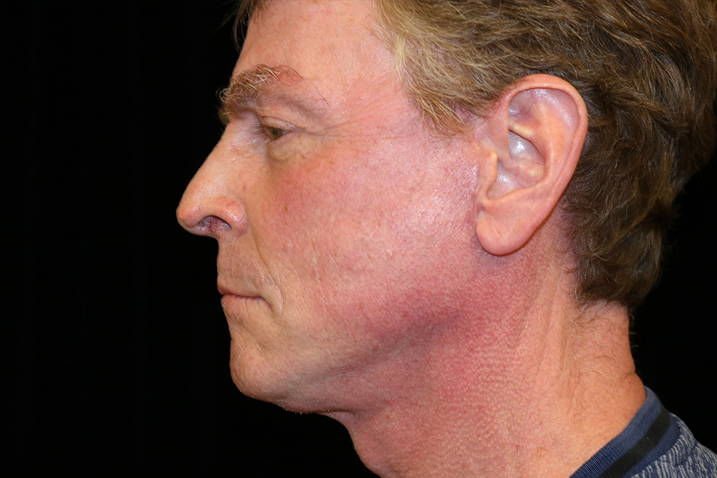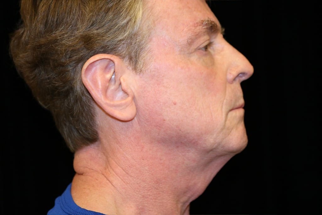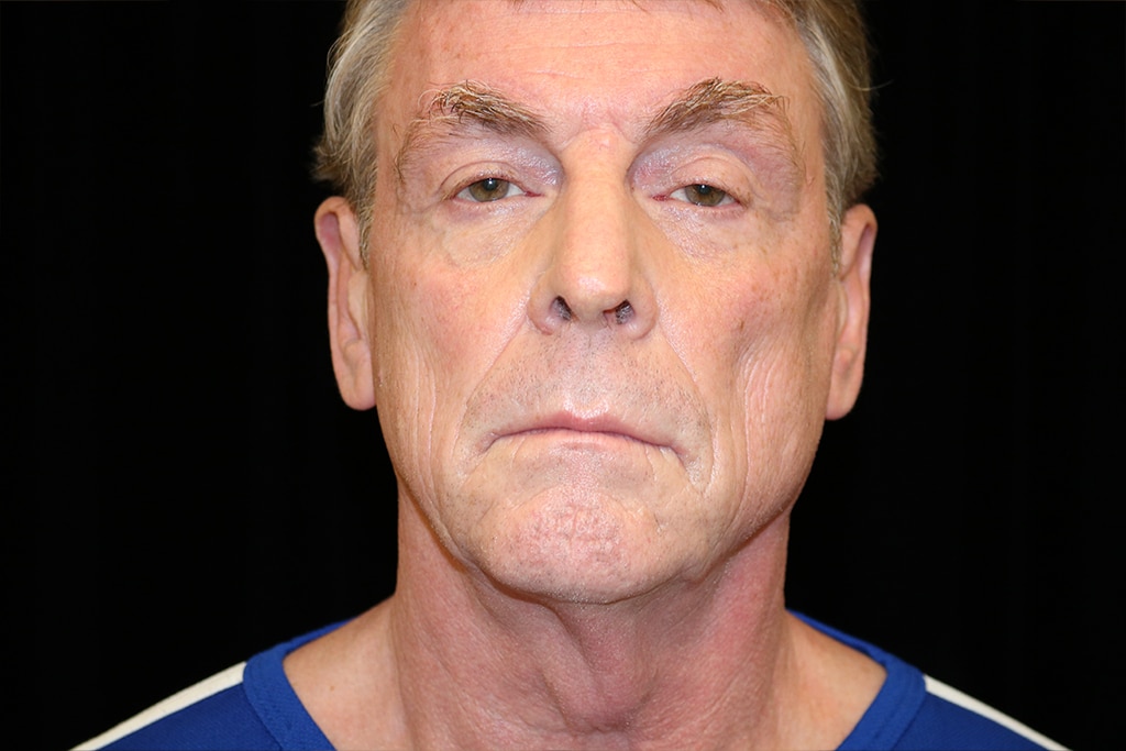 This patient is a 55-year-old male who presents with an aging face. He undergoes a SMAS vertical face and neck lift. In addition, fat injections improved the facial volume depletion to the cheeks and midface region. He is seen approximately four months after surgery.