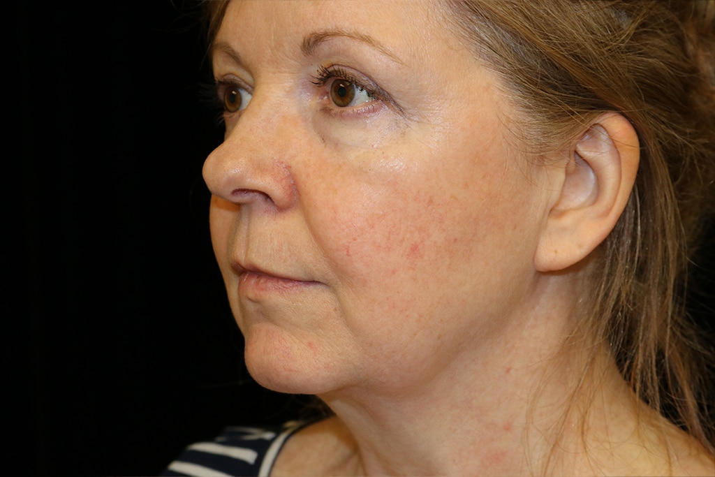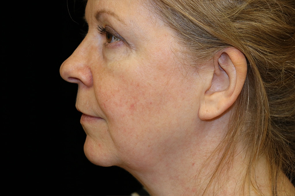 This patient is a 50-year-old female who presents for the aging face with complaints of laxity of the jowl and neck area. She underwent a lower face and neck lift using a vertical SMAS facelift. She is seen approximately two months after surgery.