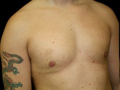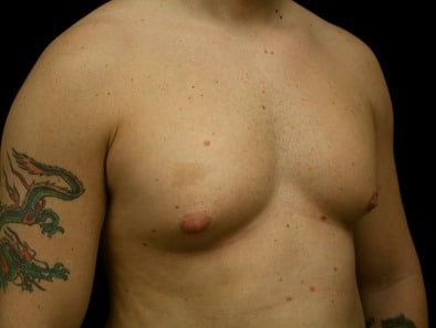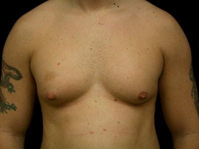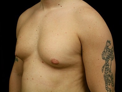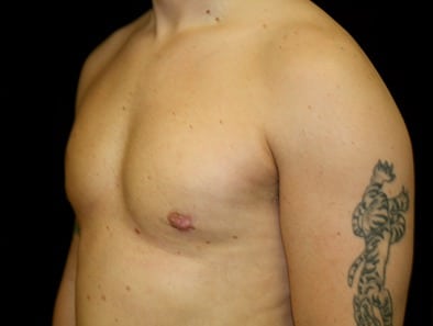 This is a 34-year-old male from Hayward, California, who presents for gynecomastia evaluation. He underwent gland excision and liposuction at Marin Cosmetic Surgery Center in Novato, California in which he had 25 grams of tissue removed from his right side and 39 grams of tissue removed from his left side. His goal was to have a better appearance and more confidence and a better custom look to his chest. His photographs are seen approximately two months after surgery.
