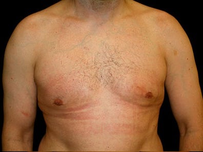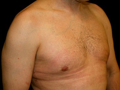 This is a 44-year-old male from Stateline, Nevada, who presents for evaluation of gynecomastia. He underwent gland excision and liposuction of his chest. He had approximately 350 cc of fat and aspirate removed from each side in addition to 16 grams of tissue removed from his right chest and 18 grams removed from his left chest. His photographs are seen approximately two months after surgery.