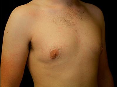 This is a 26-year-old man who presents with adolescent gynecomastia and presents for gland excision and suction-assisted lipectomy. He had his surgery performed at Marin Cosmetic Surgery Center in Novato, California. His postoperative photographs are seen approximately two months after surgery.
