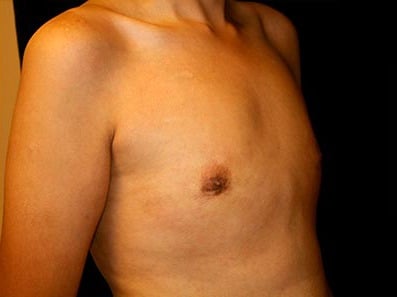 This is a 29-year-old male from San Jose, California, who presents with adolescent gynecomastia and underwent gynecomastia surgery at Marin Cosmetic Surgery Center in Novato, California. He underwent 55 grams of gland excision on his right side and 26 grams of tissue removed on his left side. This young man is from Napaul, and his photographs are seen four months after surgery.