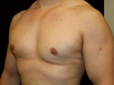 This is a 26-year- old male from Los Angeles, California, who presents with steroid induced gynecomastia and presents for gland excision and liposuction. He underwent about two cycles of steroid EEE usage that caused his condition. His overall goal is to have a normal looking chest and be 100% comfortable taking off his shirt. He underwent gynecomastia surgery at the Marin Cosmetic Surgery Center in Novato, California. He had 112 grams removed from his right chest and 132 grams from his left chest. His photographs were taken approximately three months after surgery.