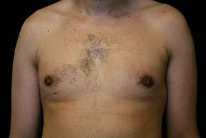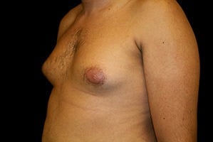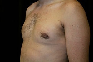 Yuba City, California This is a 28 year old male who presents with steroid induced gynecomastia and presents to the San Francisco office for gland excision and suction assisted lipectomy. He had steroid use three or four years ago in which he has had various cycles since about 2005. His weight increased from 170 to about 212 pounds. His goal is to have his chest more flat. He is 5 feet 11 inches tall and weighs 212 pounds. His surgery was performed at Marin Cosmetic Surgery Center in Novato, California. He had 78 grams of breast tissue removed from his right chest and 52 grams of breast tissue removed from his left chest. In addition he had 550 cc. of fat and aspirate removed from his right chest and 600 cc. of fat and aspirate removed from his left chest. His post op course was uncomplicated except for a few steroid shots for scarring. His photographs are seen approximately 9 months after surgery.