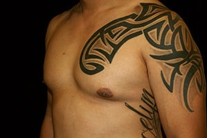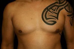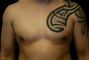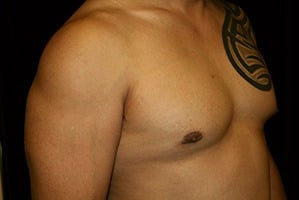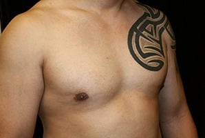 Rohnert Park, California This is a 24 year old male who presented to the Novato, California office for evaluation of his gynecomastia. He had breast enlargement since adolescence as well as having weight fluctuations as high as 300 pounds. His goal is to have a normal looking chest and to be able to wear tank tops and tight fitting shirts. He is 6 feet 2 inches tall and weighs 255 pounds. His surgery was performed at Marin Cosmetic Surgery Center in Marin County, California. He had 107 grams of breast tissue removed from his right chest and 101 grams of breast tissue removed from his left chest. In addition he had 750 cc. of fat and aspirate removed from both his right and left chest. He had an uneventful post op recovery. He underwent one steroid injection on his left side. His photographs are seen at 2 months after surgery.