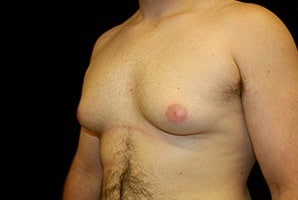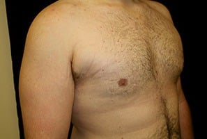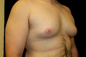 Berkley, California This is a 26 year old male who presents with adolescent gynecomastia to the San Francisco office for gland excision and liposuction for gynecomastia treatment. He has had this since adolescent years. Due to extreme embarrassment, he has decided to have surgery. He is 6 feet tall and weighs 245 pounds. His surgery was performed at Marin Cosmetic Surgery Center in Novato, California. He had 50 grams of breast tissue removed from his right chest and 77 grams of breast tissue removed from his left chest. He had 250 cc. of fat and aspirate removed from each side of his chest. His post op course was uncomplicated. His photographs are seen at approximately three months after surgery.
