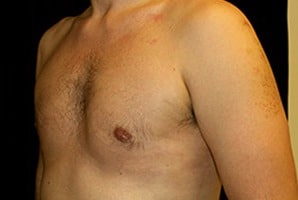 San Francisco, California The patient is a 27 year old man who presents to the San Francisco office with adolescent gynecomastia and presents for gland excision and suction assisted lipectomy of his chest. He is 6 feet 2 inches and weighs 180 pounds. His surgery was performed at Marin Cosmetic Surgery Center in Novato, California. He had 38 grams of breast tissue removed from his right chest and 47 grams of breast tissue removed from his left chest. He also had 150 cc. of fat and aspirate removed from each side of his chest. He had an uneventful post op course and his photographs are seen at 2 months after surgery.