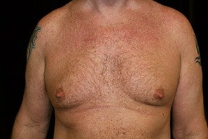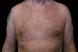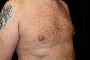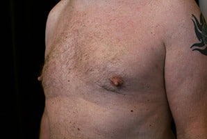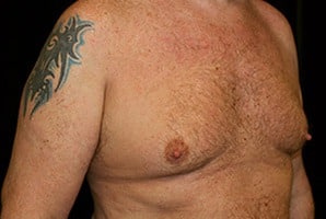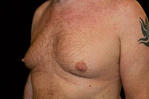 San Francisco, California This is a 53 year old male who presents with adolescent gynecomastia that has been complicated by taking steroids for muscular growth. His goal is to be able to take off his shirt in public and to be comfortable. He is 6 feet 3 inches, 220 pounds. He underwent gland excision and suction assisted lipectomy of his chest as well as his axilla or armpit. His surgery was performed at Marin Cosmetic Surgery Center in Marin County, California. He had 70 grams of breast tissue removed from his right chest and 46 grams of breast tissue removed from his left chest. He had 650 cc. of fat removed from both the right and left armpit region as well as 850 cc. removed from both the right and left chest. His post operative course was uneventful and his photographs were taken 3 months after surgery.