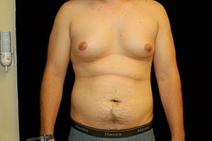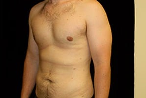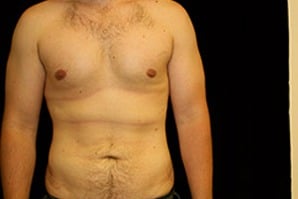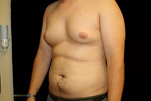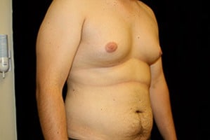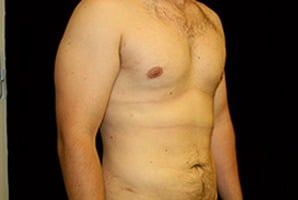 Quincy, California The patient is a 25 year old male who presents with adolescent gynecomastia for evaluation of his chest and lipodystrophy of his abdomen and flanks. He is 6 feet, 215 pounds. He underwent gland excision and suction assisted lipectomy of his chest, as well as liposuction of abdomen and flanks. We excised 79 grams of breast tissue from his right chest and 103 grams of breast tissue from his left chest. He had 875 cc. of fat removed from his left flank and 1300 cc. of fat removed from his right flank. He had approximately 700 cc. of fat and aspirate removed from each chest. His post op course was complicated by post op hematoma in which 150 cc. was removed from his left chest. Other than this he had an uneventful post op course. His photographs are seen about 7 months after surgery.