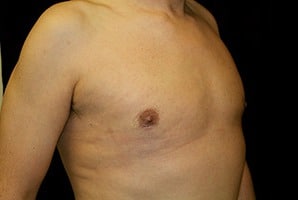 Sacramento, California This is a 50 year old male who presents with adolescent gynecomastia and states that after taking Lipitor he saw a significant increase in the bulk of his chest. He presents for gland excision and liposuction at Marin Cosmetic Surgery Center in Marin County, California. He is 6 feet 2 inches, 188 pounds. He had 61 grams of breast tissue removed from his right chest and 52 grams of breast tissue removed from his left chest. He also had 400 cc. of fat removed from each side of his chest as well. He had a normal post operative course. His photographs are taken approximately 4 months after surgery.