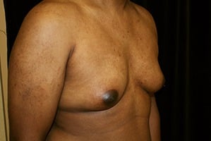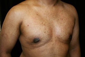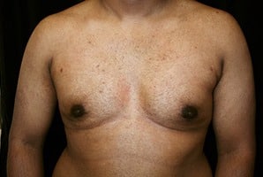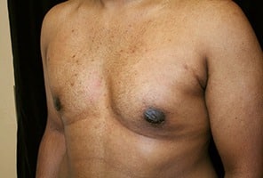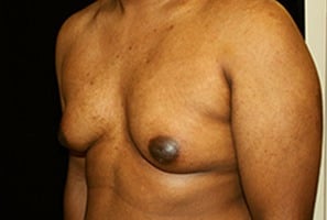 San Bruno, California This is a 23 year old male who presents to the San Francisco, California office for evaluation of his adolescent gynecomastia. He does not take off his shirt in public due to embarrassment and shyness and his goal is to obtain a flat chest. He is 5 feet 8 inches, 210 pounds. He underwent gland excision and suction assisted lipectomy at Marin Cosmetic Surgery Center in Marin County, California. He had 155 grams of breast tissue removed from his right chest and 151 grams of breast tissue removed from his left chest. He had liposuction of his axilla as well as his chest. He had 750 cc. of fat removed from each armpit area and then was turned flat and had additionally 300 cc. removed from his right chest and 400 cc. from his left chest. He had an uneventful post operative recovery. His photographs are seen at four months after surgery.