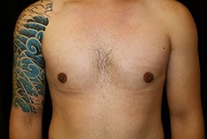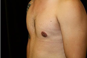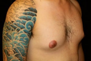 San Jose, California This is a 26 year old male who presents with adolescent gynecomastia to the San Francisco office. He is 5 feet 11 inches, 168 pounds. He underwent removal of 58 grams of breast tissue from the right side and 54 grams of breast tissue from his left side. His surgery was performed at Marin Cosmetic Surgery Center in Novato, California. In addition he had 200 cc. of fat lipo-suctioned from his left chest and 100 cc. of fat lipo-suctioned from his right chest. He had an uneventful post operative course. His photographs are seen at approximately 2 months after surgery.